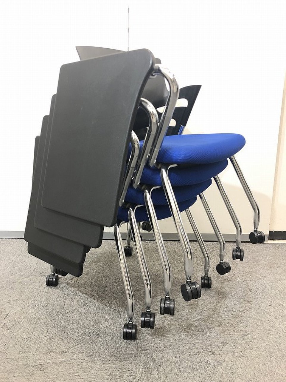 【4脚セット販売!!】ミーティングチェアに【メモ台付き】でセミナーや記者会見場でもよくお使いになられています!!【レア商品】- なんば日本橋店