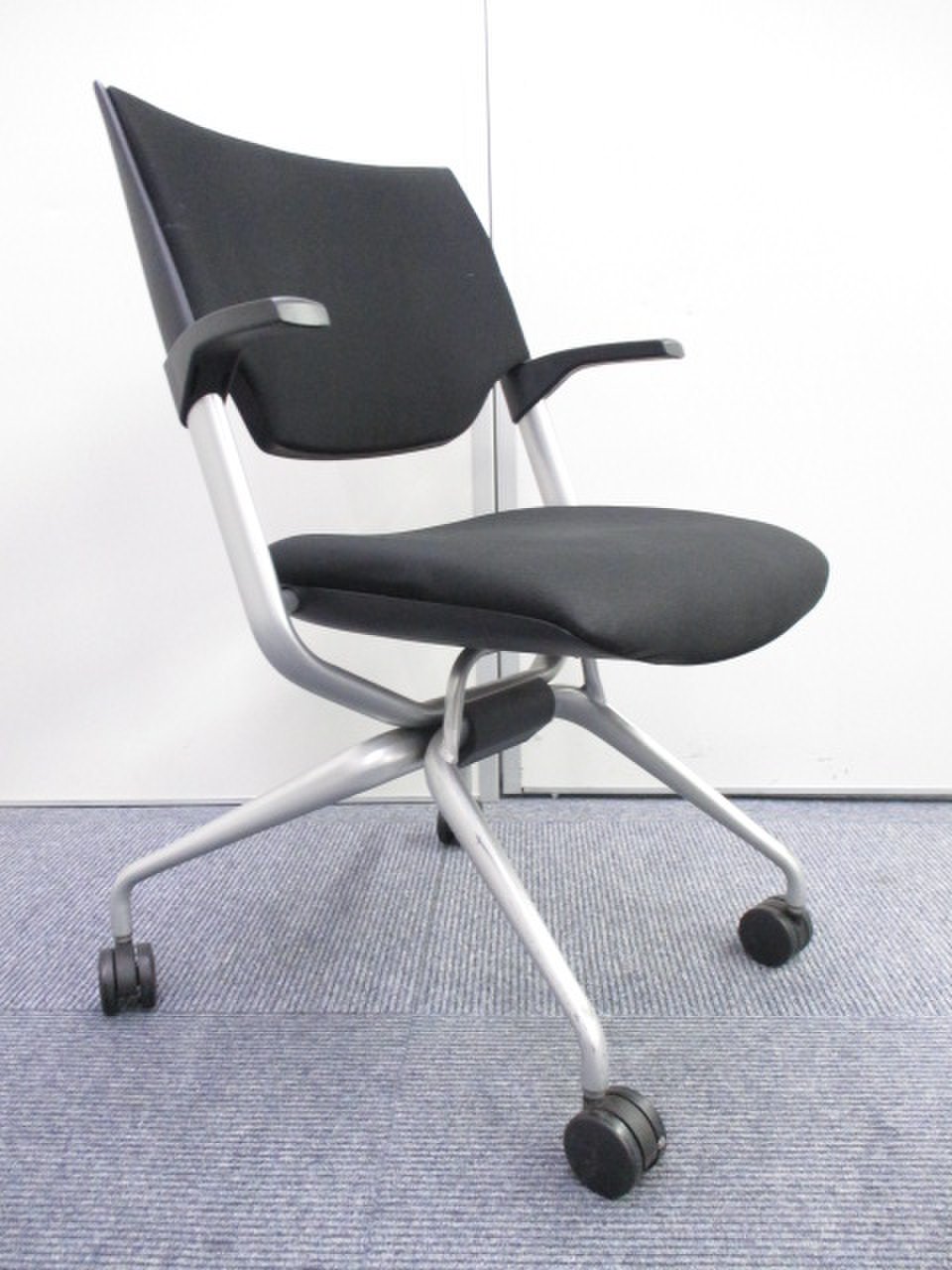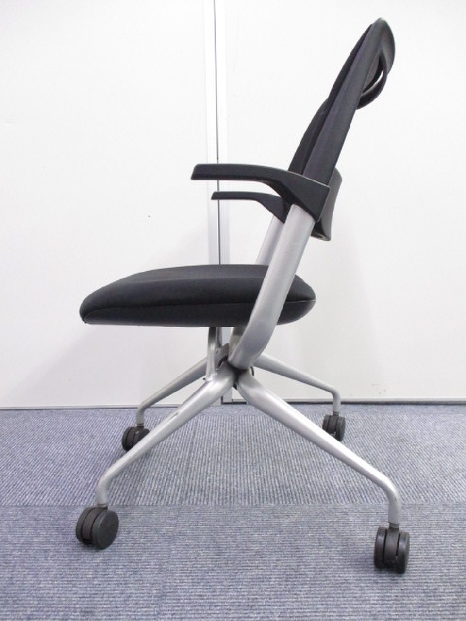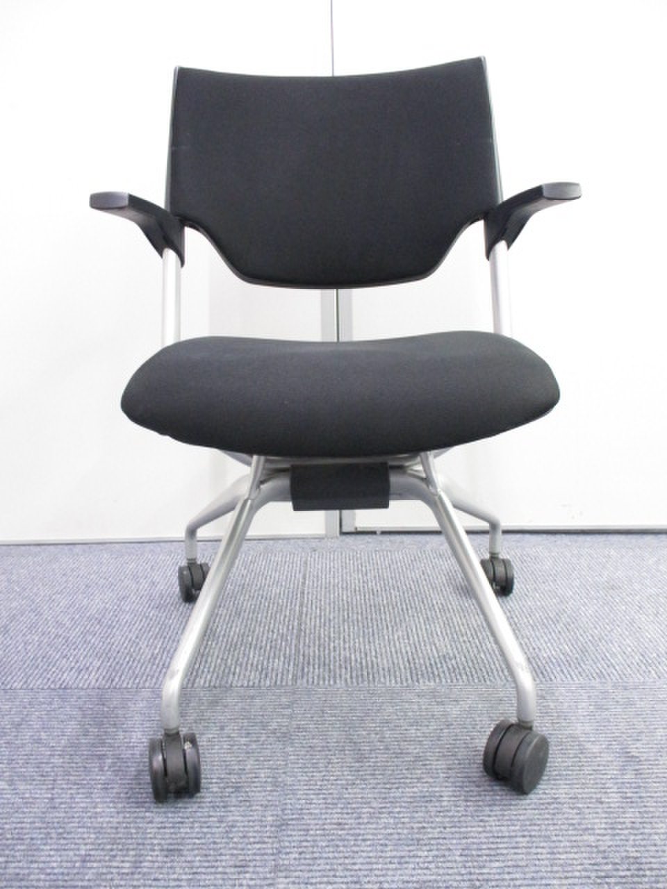 【KS】【高級感のあるミーティングチェア】肘が付いているスマートタイプにネスティングチェア!定番チェア!【2脚あまりの為お安く!】- 茨城南店