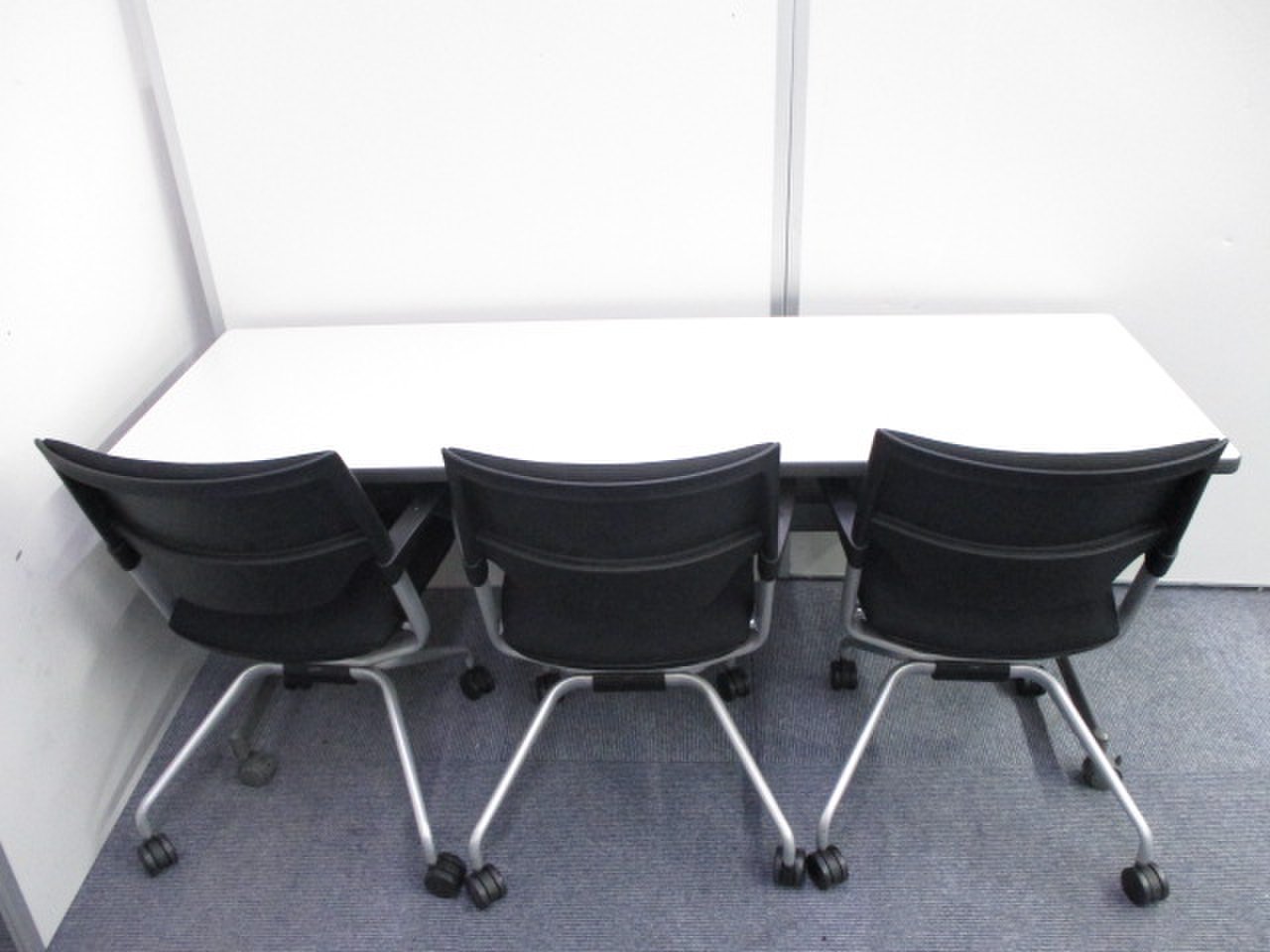 【KS】【3名ですぐ使えるセット!】サイドスタックテーブル+チェアでミーティングや作業用に!移動や片付けも簡単に出来ます!- 茨城南店