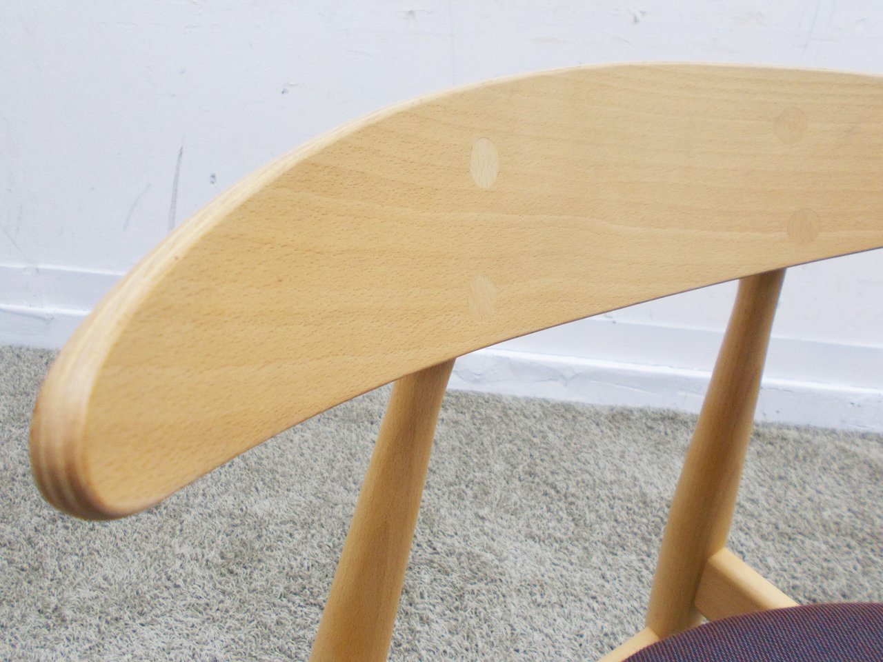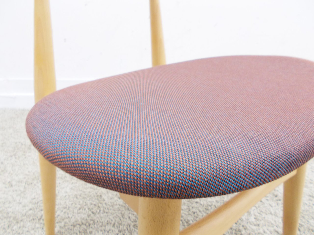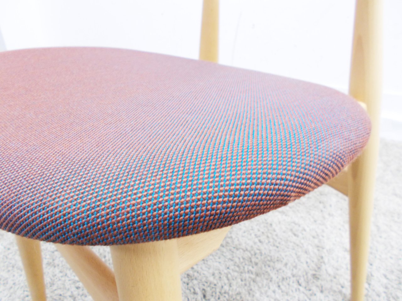 材質はビーチ材、座面クッション張りで、張地は角度により色味の変化が楽しめます