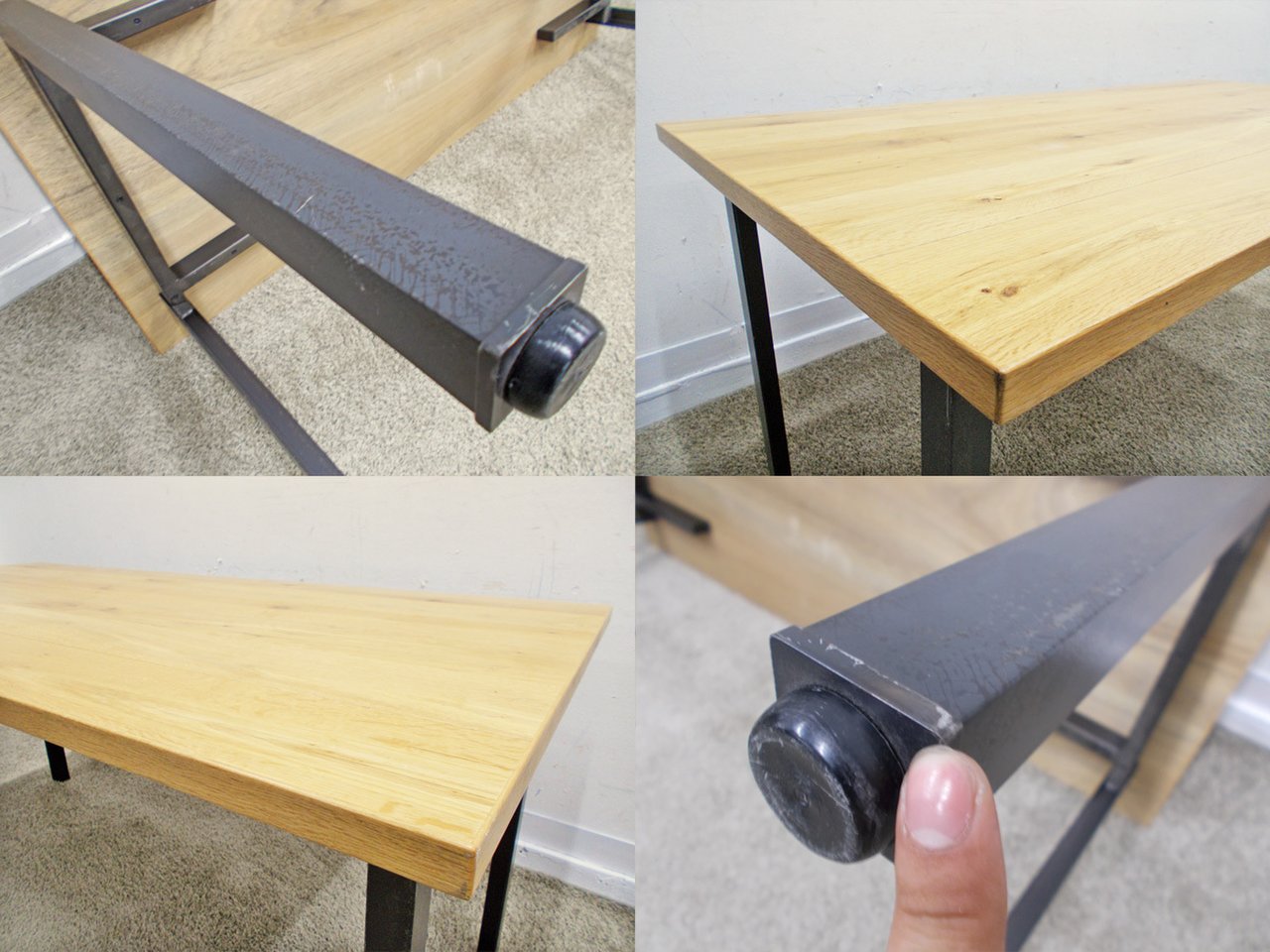 - 壊れている天板歪み、アジャスター無し、キャスター使用不可のようにそのテーブルの本来の効用を果たすための機能に不具合がある。
