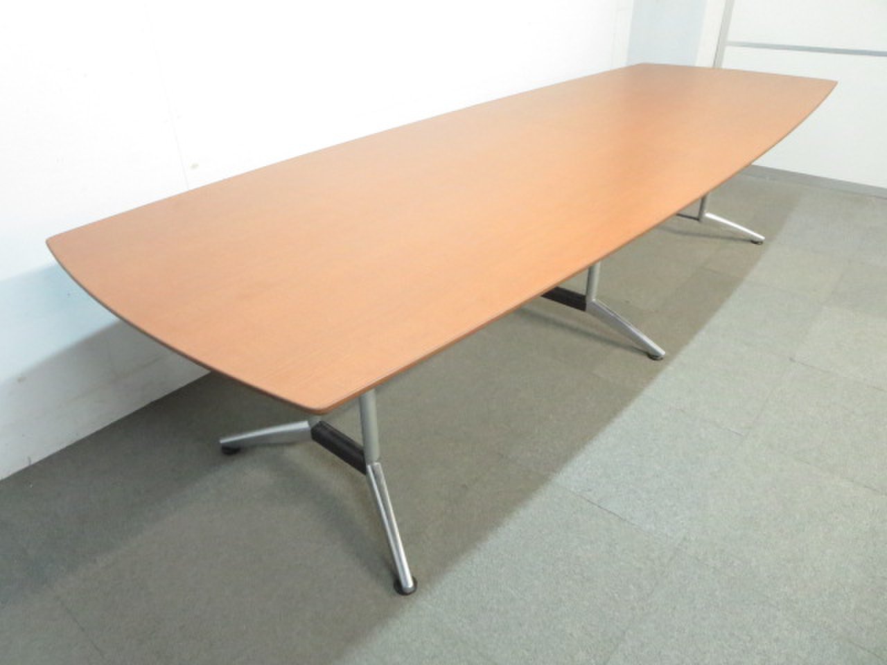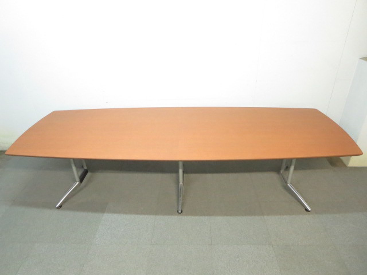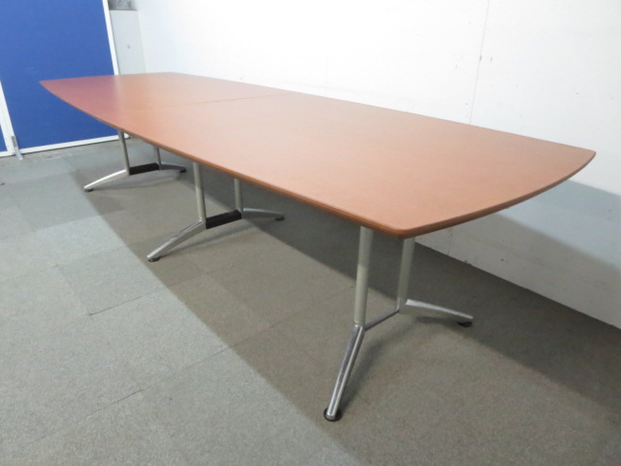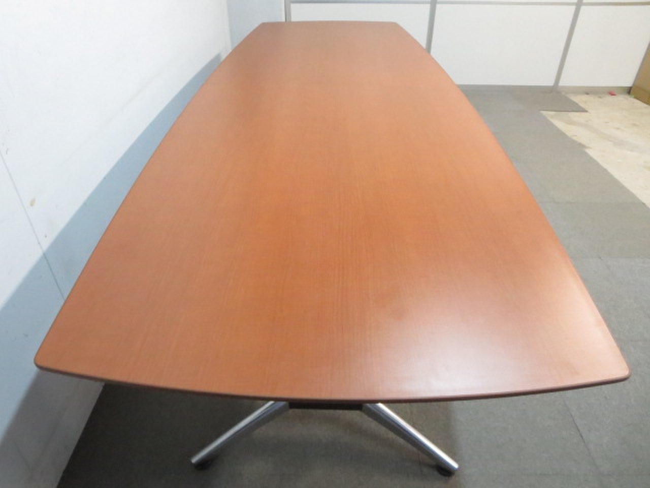 【ハイグレードなデザイン!】■大型会議テーブル W3000mm 木目柄ブラウンカラー【高級オフィス家具】- 川崎店