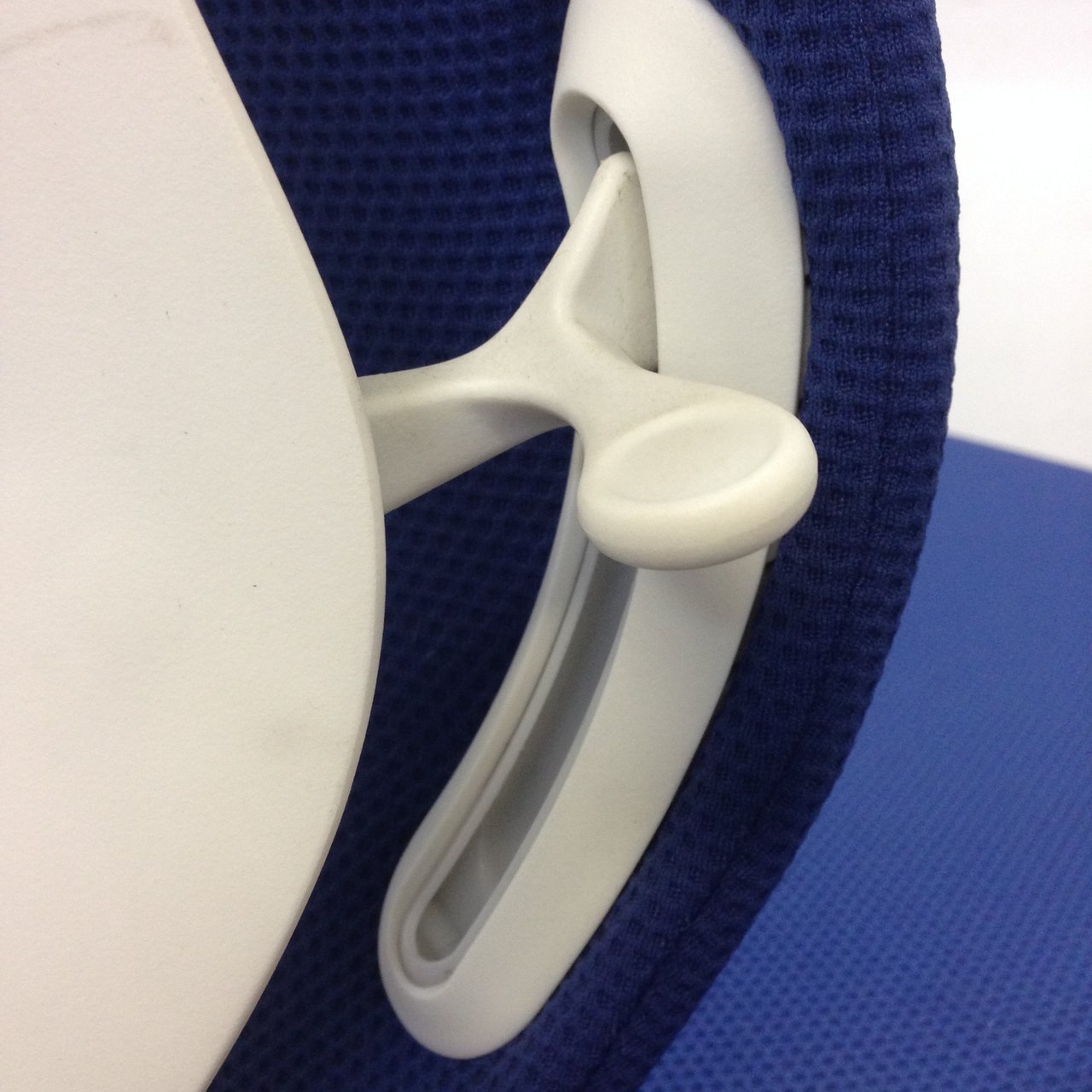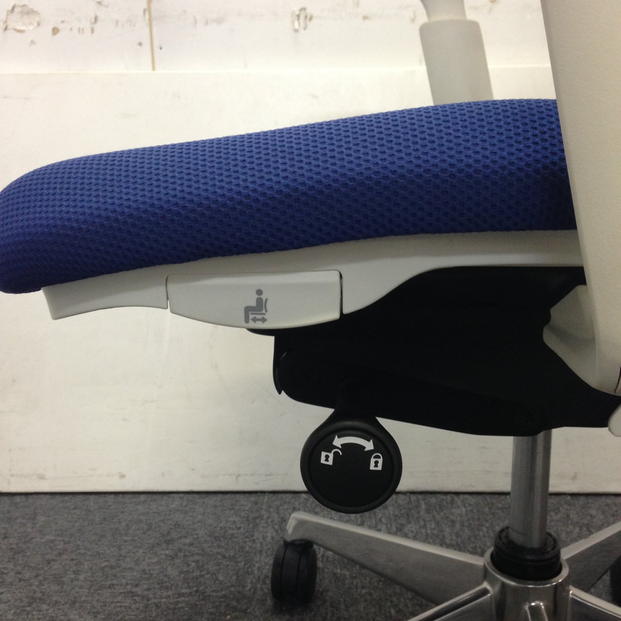 - 座面右下のダイヤル操作で、リクライニングの強弱調整が行えます。これまでのダイヤル式よりも、少ない回転数で、最弱?最強の調整が可能です。