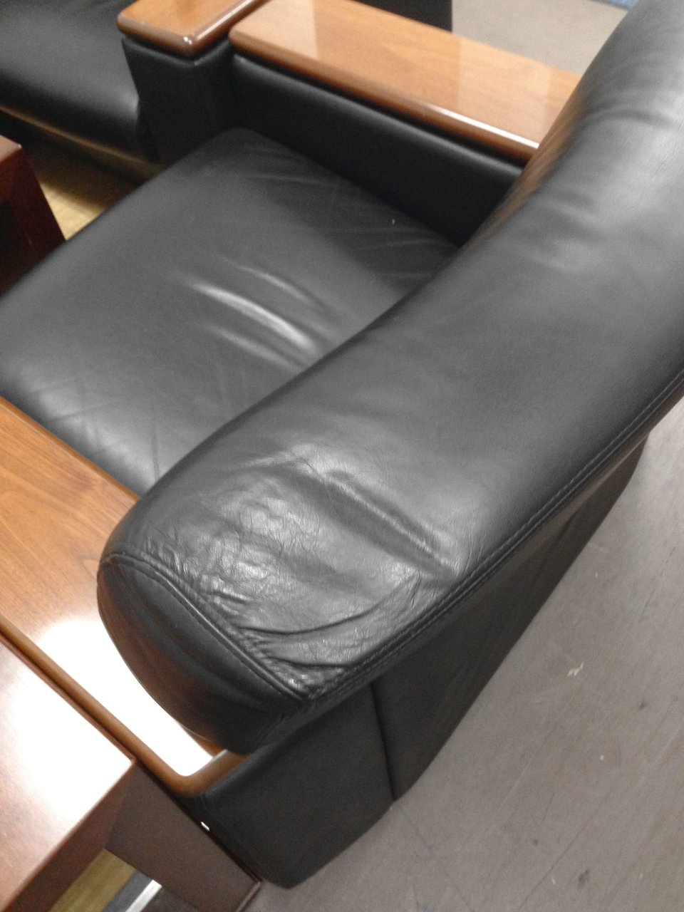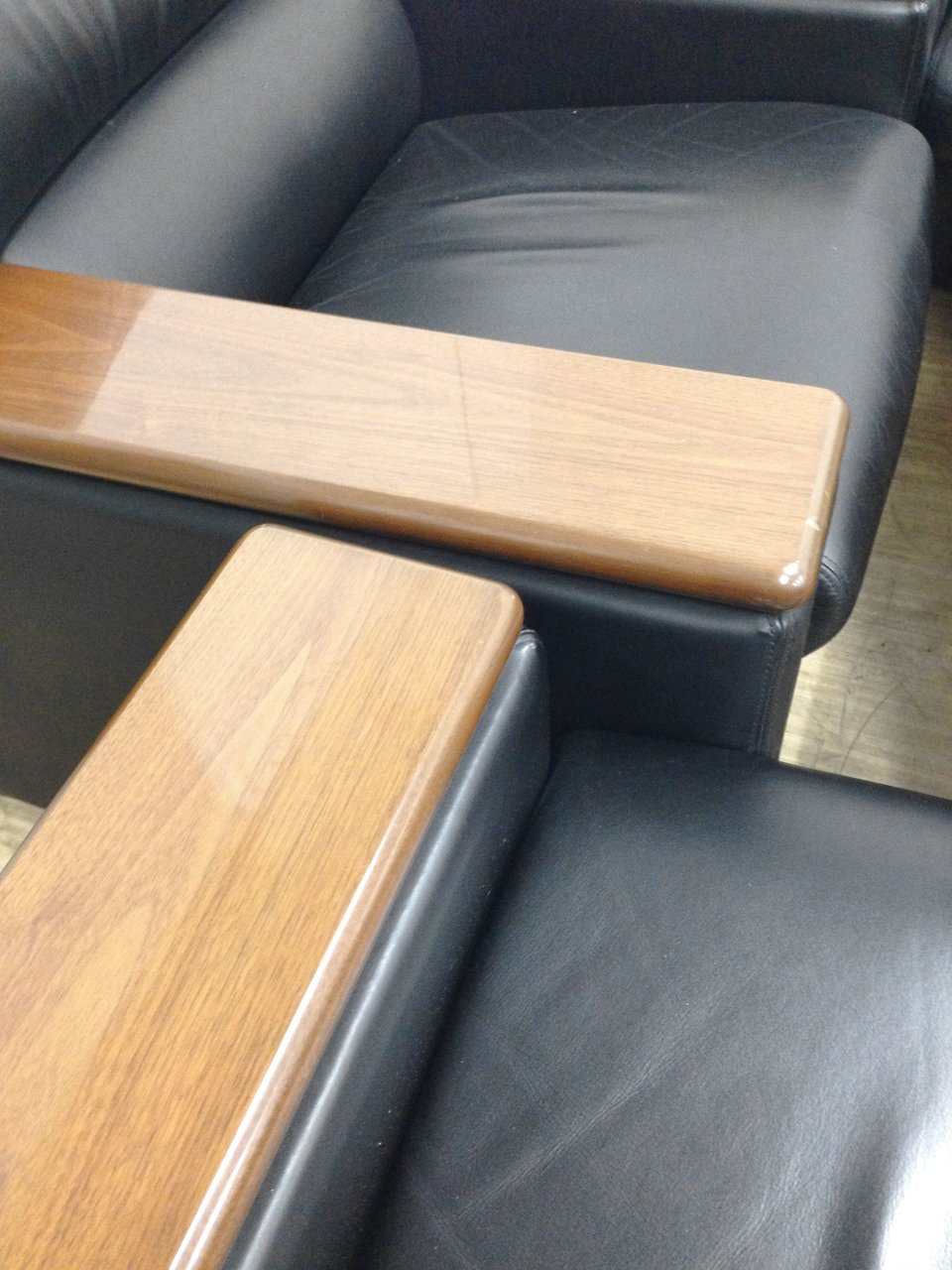 - あり黄ばみ・変色が広い範囲にうっすらある、または濃い黄ばみ・変色が一部ある。(例:三人用ソファ、二人用ソファ、一人用ソファの場合、背もたれ、肘かけ、座面等、 センターテーブルの場合、天板、脚にある。)