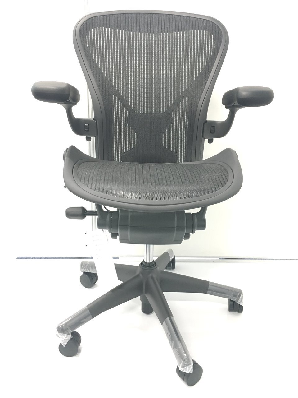 【新古品】【メッシュチェア】アーロンチェア「稼働肘・前傾機能・上下昇降・ポスチャーフィット付き」フル装備 Bサイズ ハーマンミラー社新古