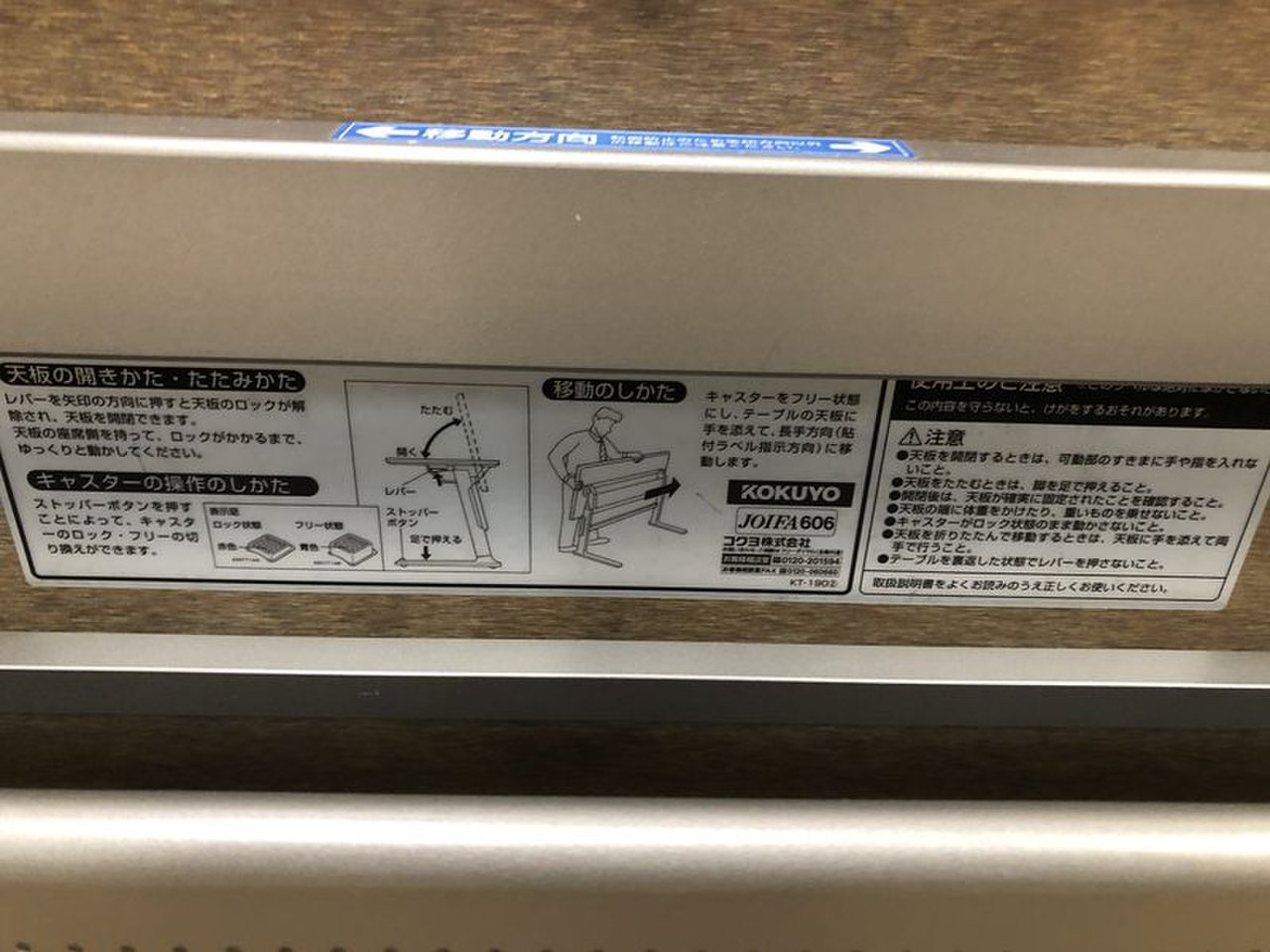 - 一部不具合あり天板歪み、アジャスター無し、キャスター使用不可ようなそのテーブルの本来の効用を果たすための機能以外の一部が使用不可な状態。(例、キャスターロッ ク機能使用不可、棚板無し等がある。)