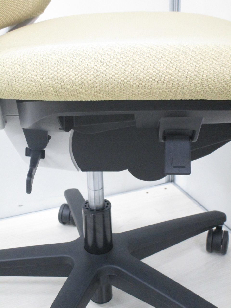 - 座面の高さは上下に90㎜、奥行は前後に50㎜調節可能。さらに骨盤を支えるポスチャーシート採用で着座時の前滑りを防ぎます。