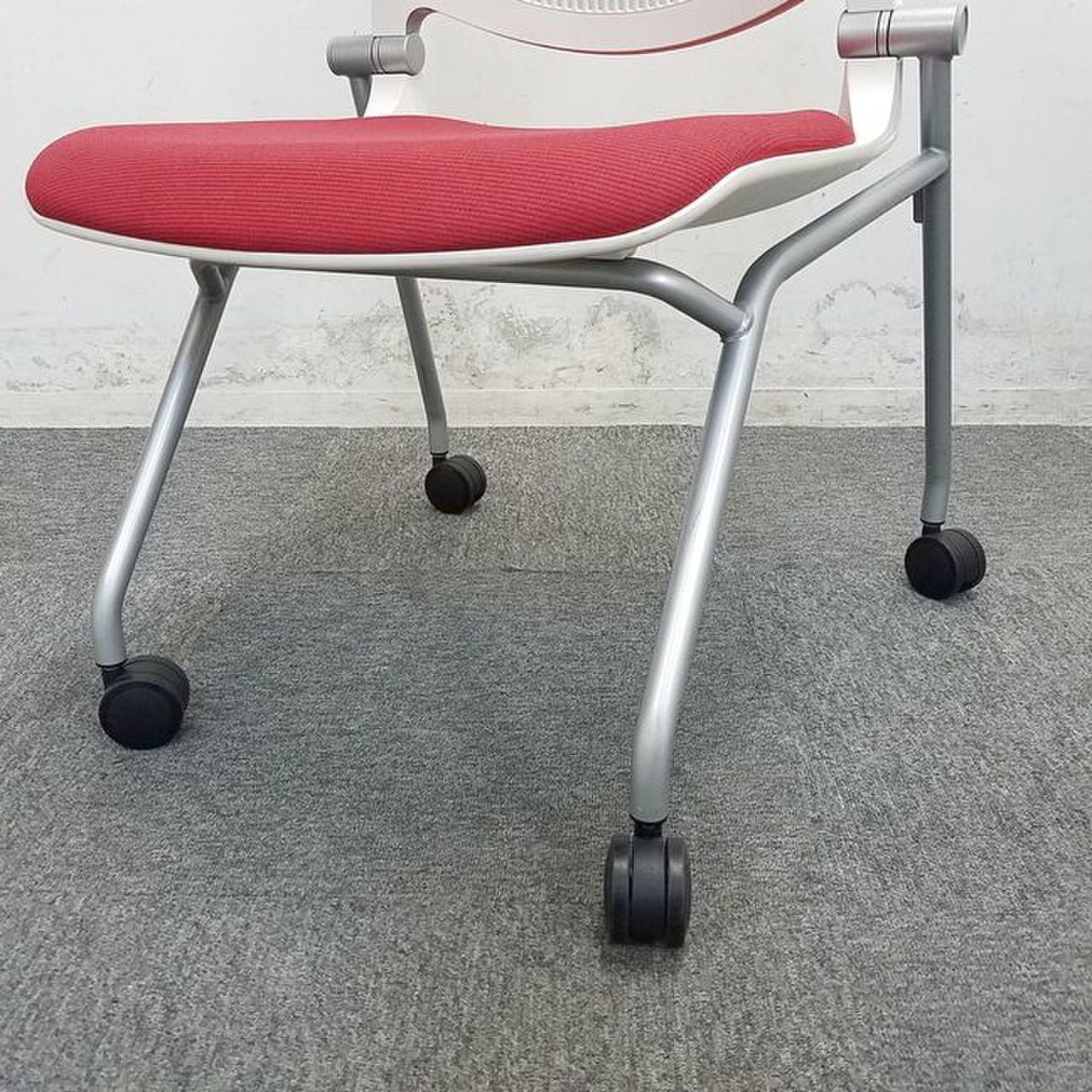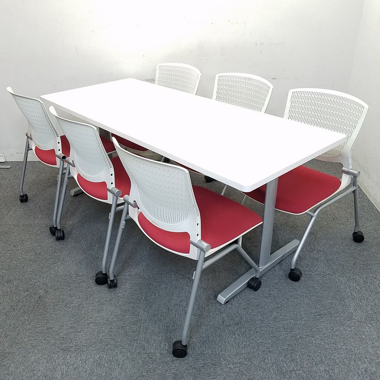 【セット商品!】鮮やかなレッドカラーが特徴!|ネスティングチェア+ミーティングテーブル!|4名~6名様用|T字脚|- 大阪・堺店