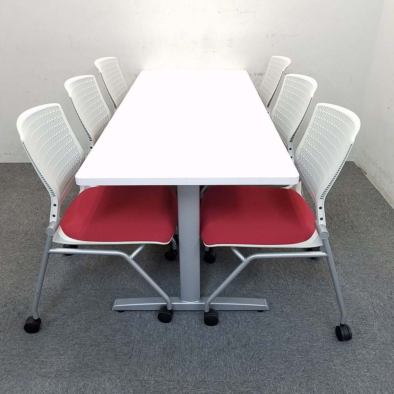 オカムラ 8177シリーズ ミーティングテーブル 天板ホワイト T字脚 W1800/D750 4~6人掛け想定