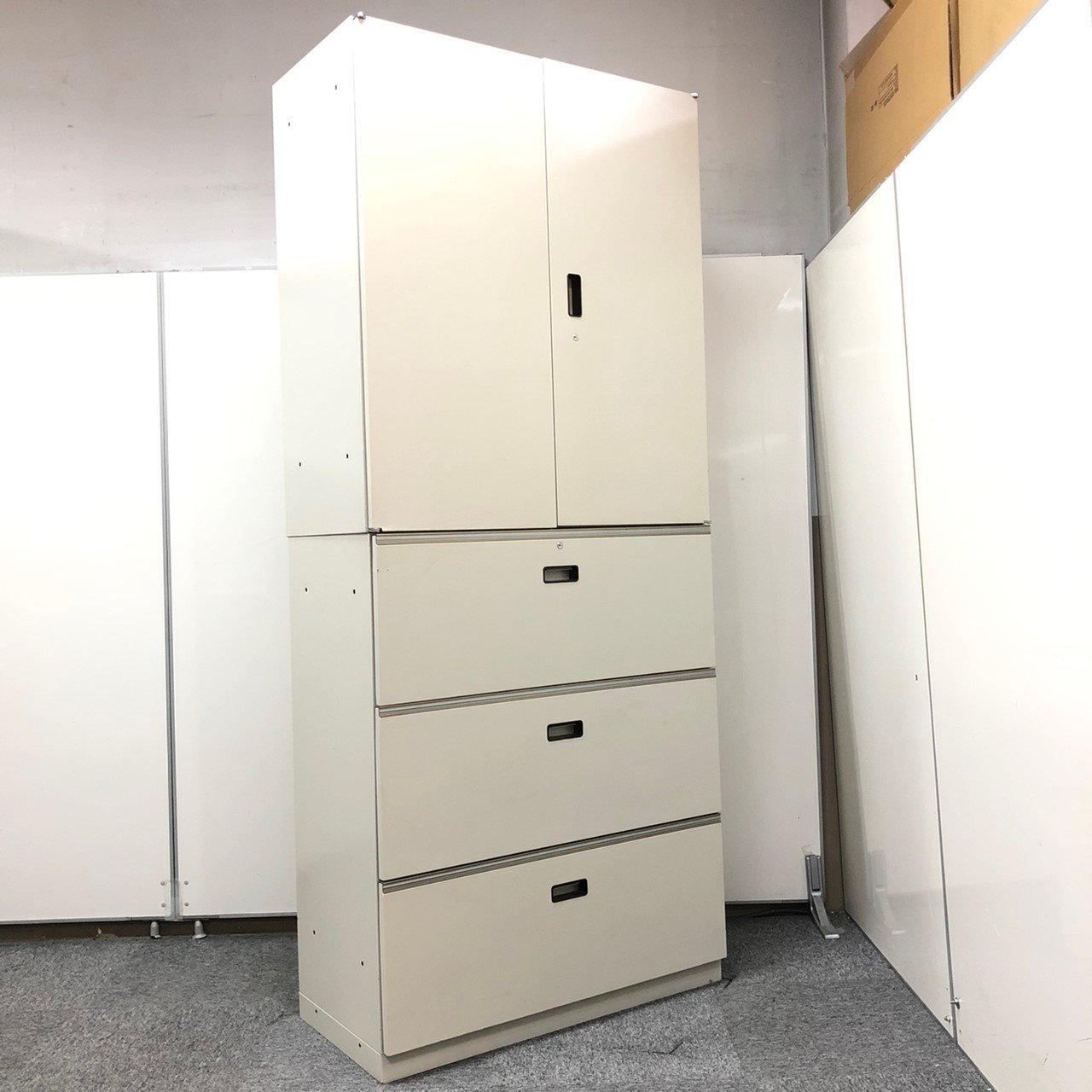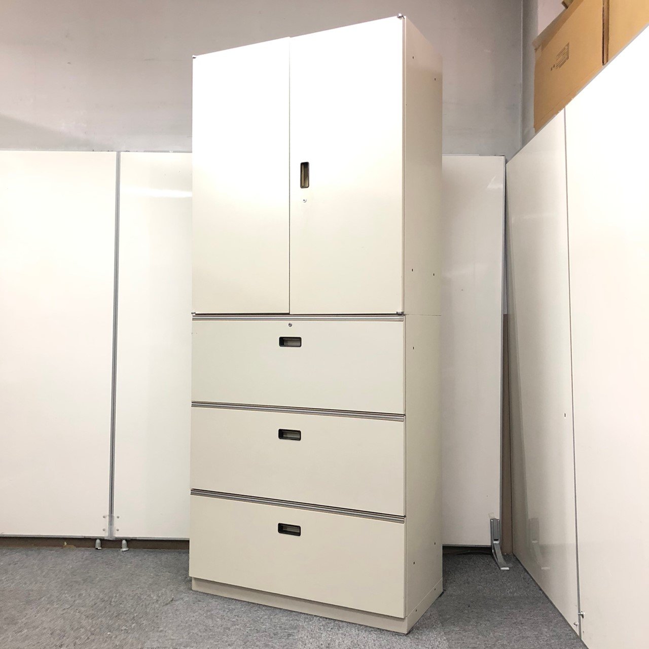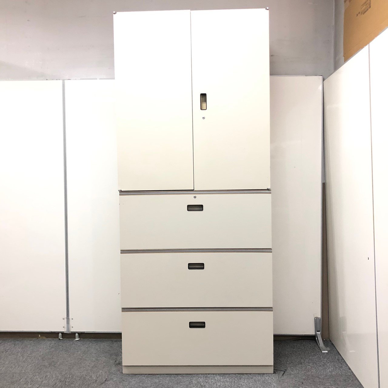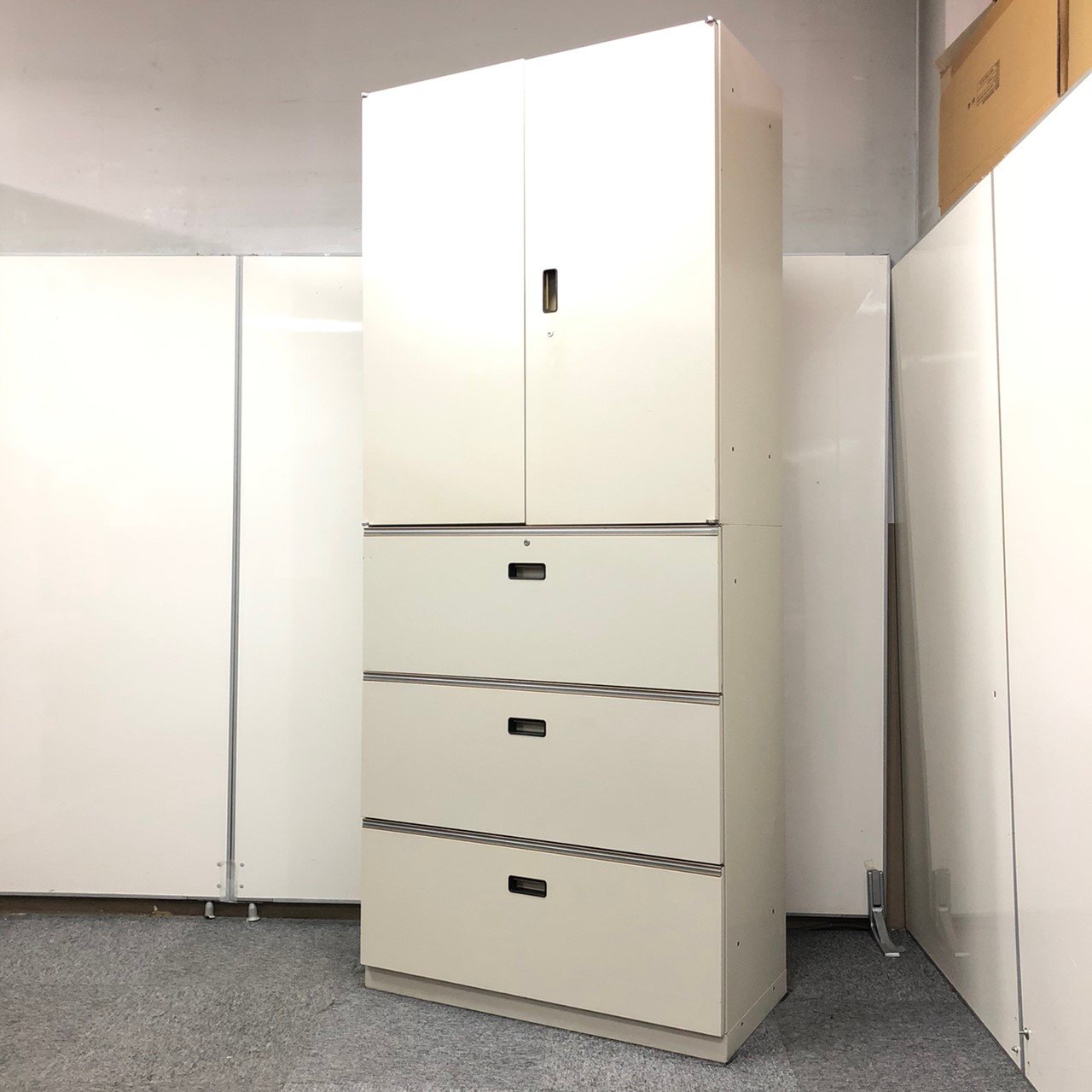 - 一部不具合ありそ引出の開閉不可、施錠不可、棚板無しといったの書庫の本来の効用を果たすための機能以外の一部が使用不可(例、扉、引出の開閉がしづらいなどがある。 )