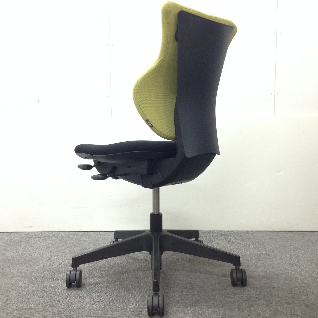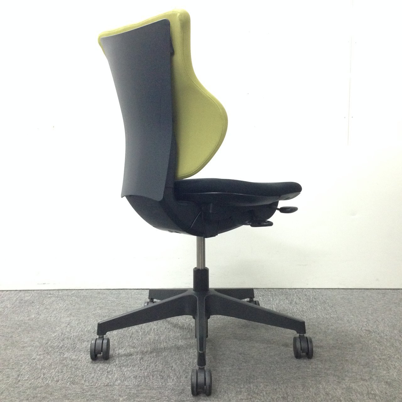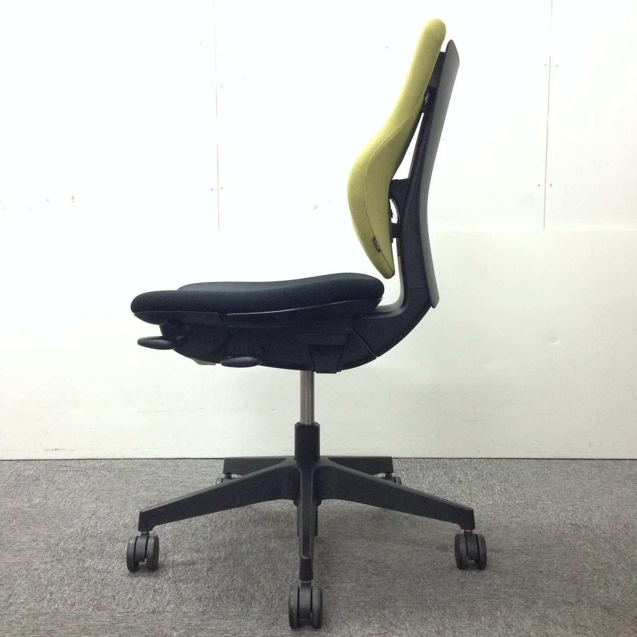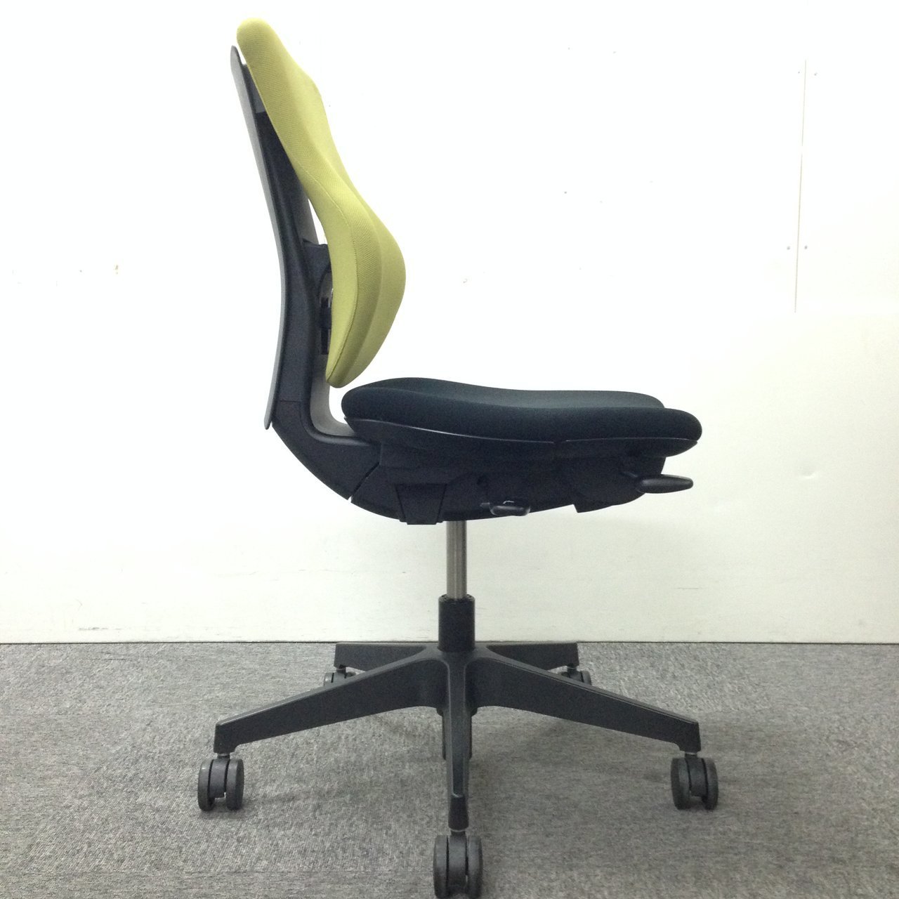 - 女性の作業姿勢に多く見られる2つの姿勢を、美しく支える背もたれ形状です。後傾しても背のラインを崩しません。