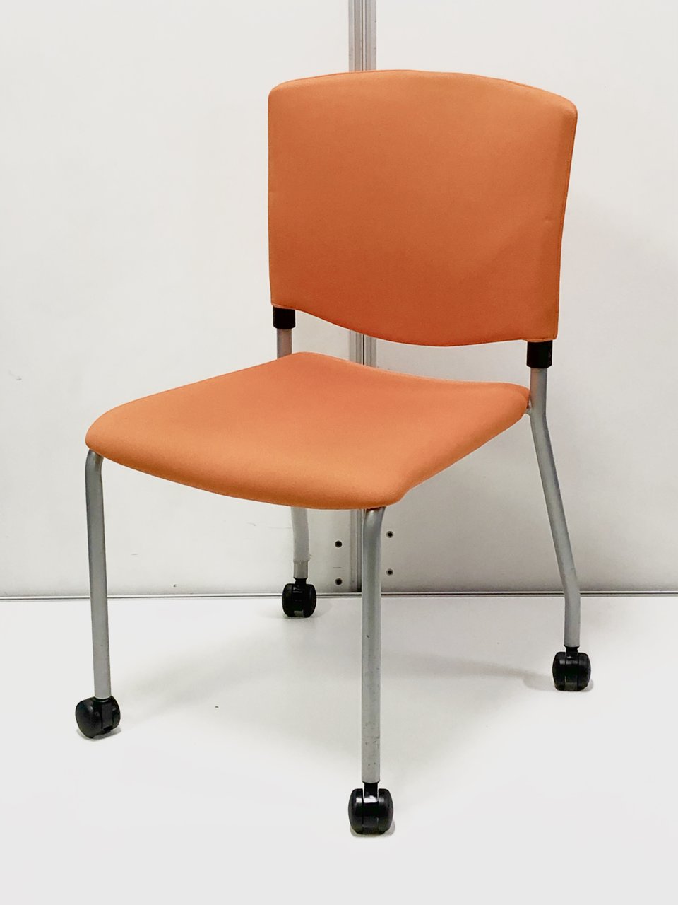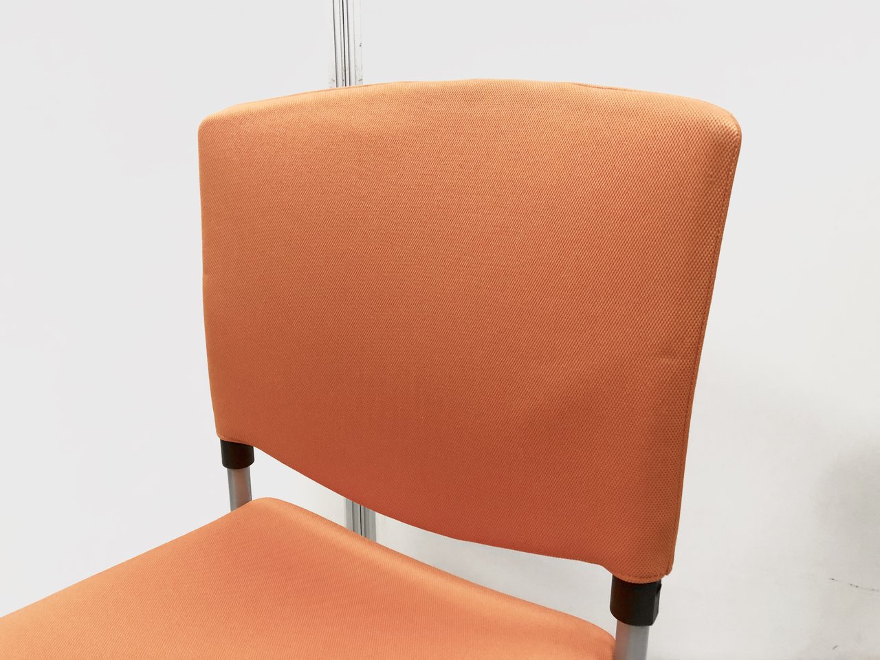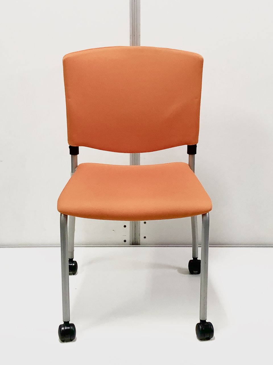 4脚セットでお買い得!明るくきれいなオレンジのスタッキングチェア!垂直に重ねてスペースを取らない!- 埼玉本店