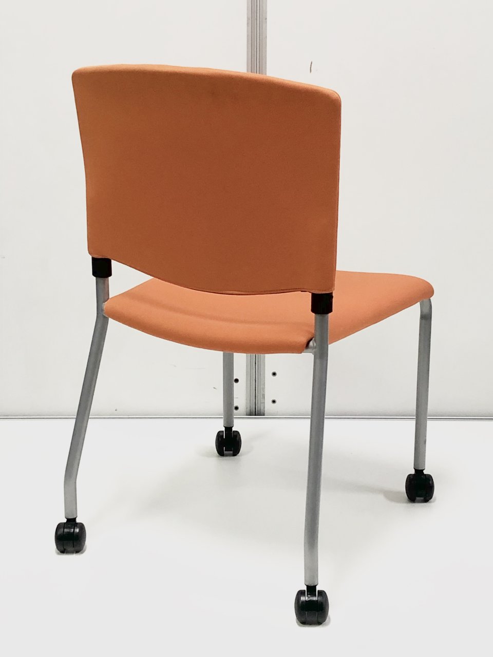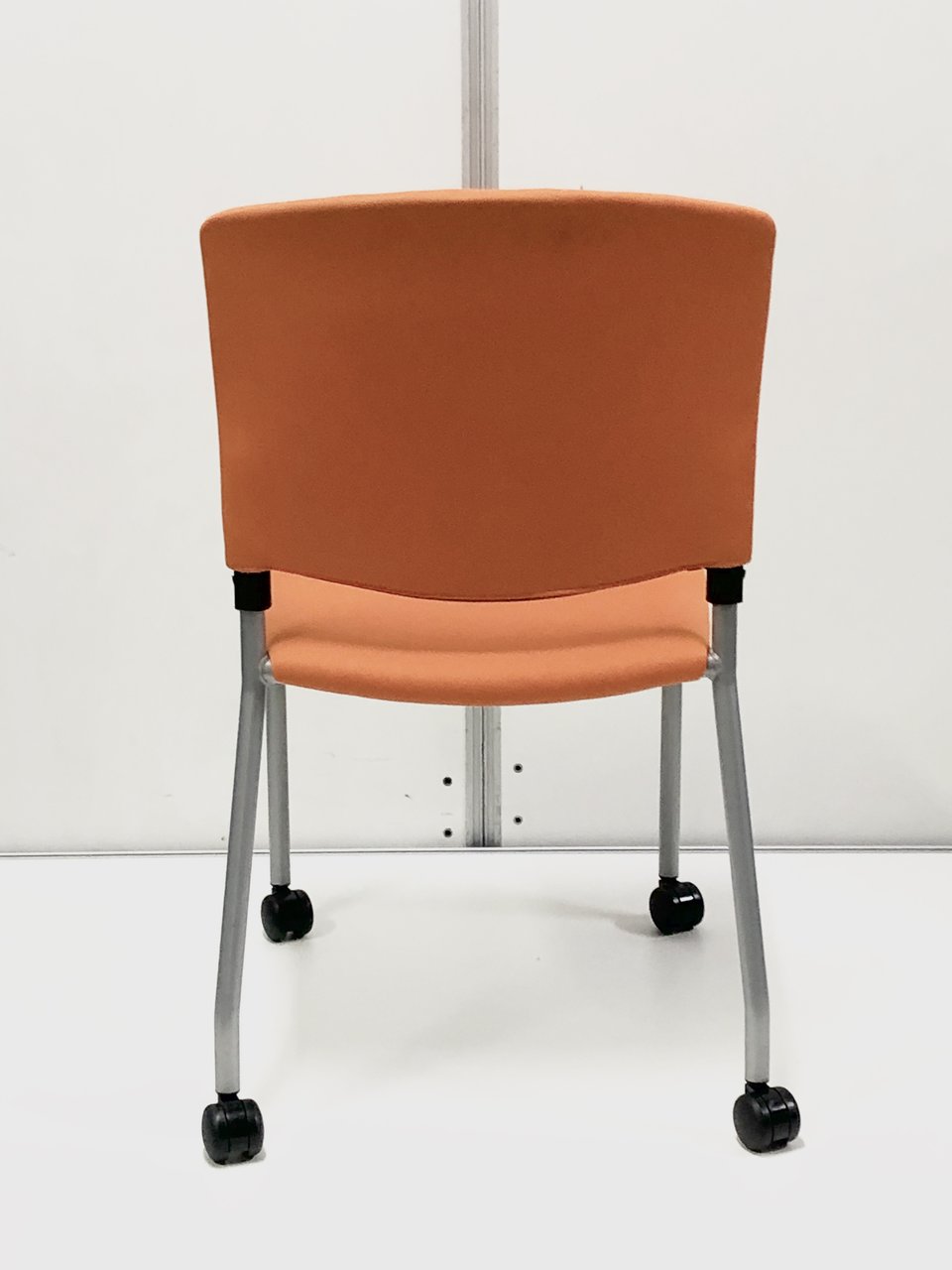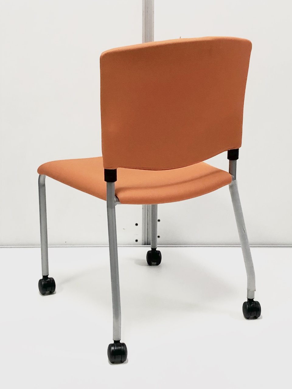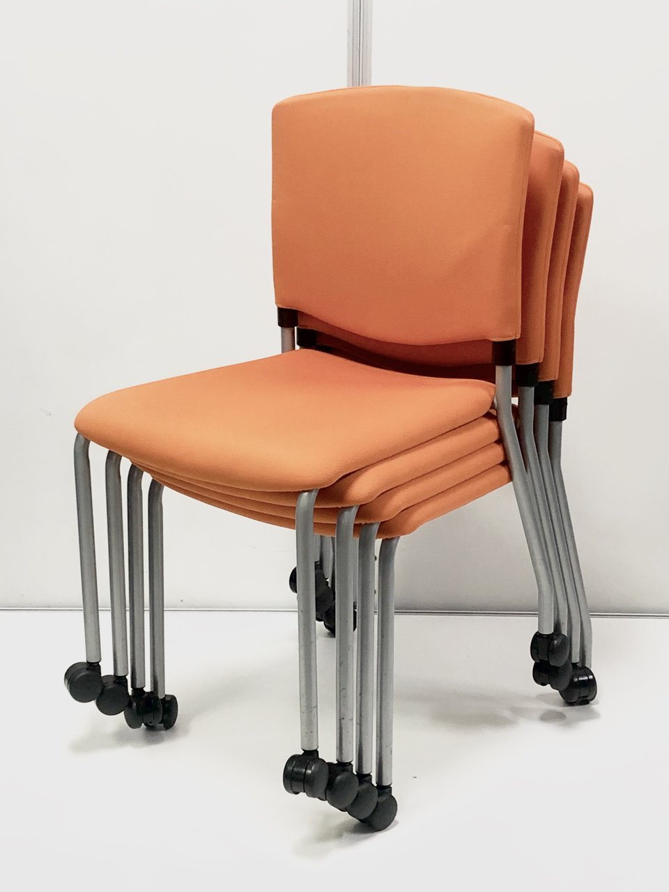 オレンジ色がきれいなスタッキングチェアが4脚セットで登場です。