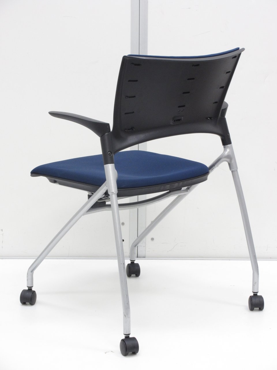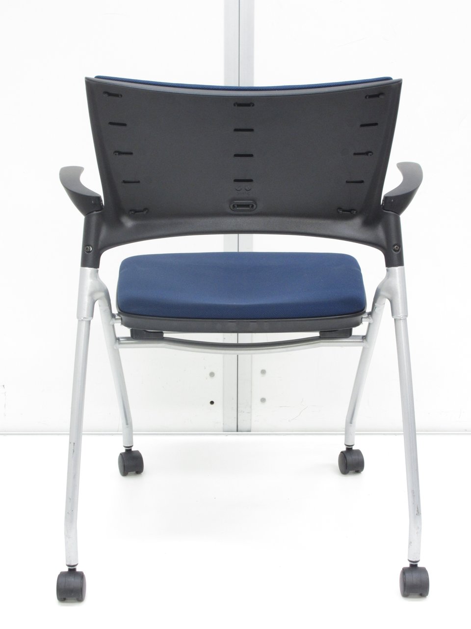 【定価6万円】【ソフトベンディングシェルが背を優しく受け止める!】■イトーキ(ITOKI) マノスチェア(MANOSS) 肘無し スタッキングチェア ミーティングチェア ■背パッド付 ■キャスター脚 ■ブルー