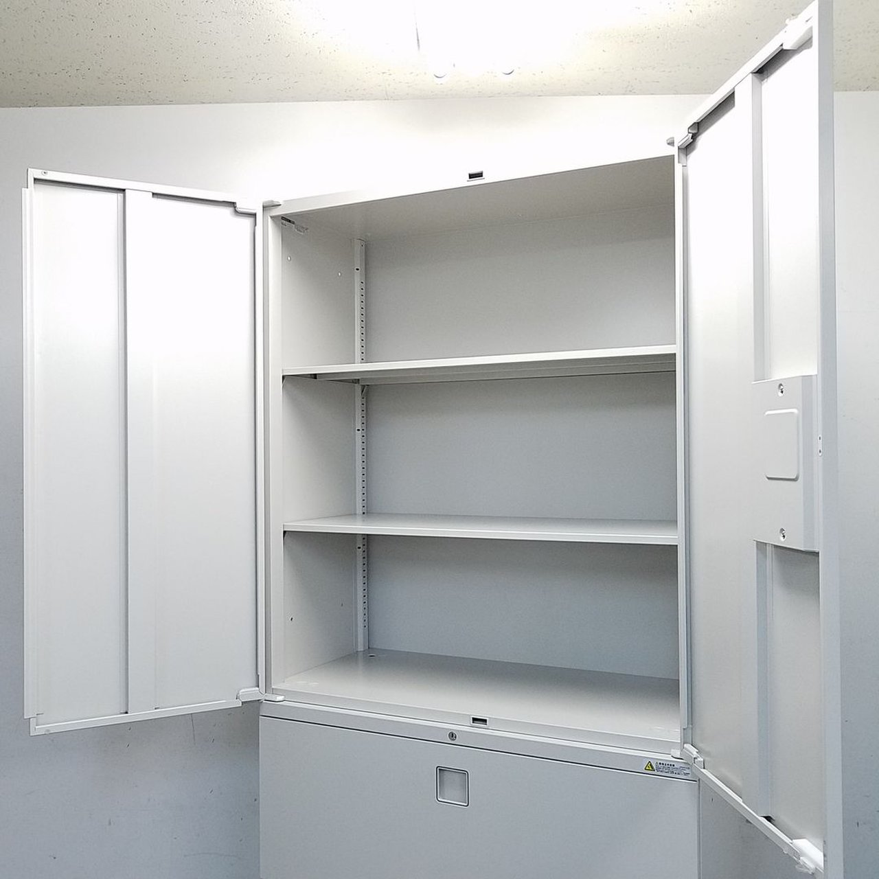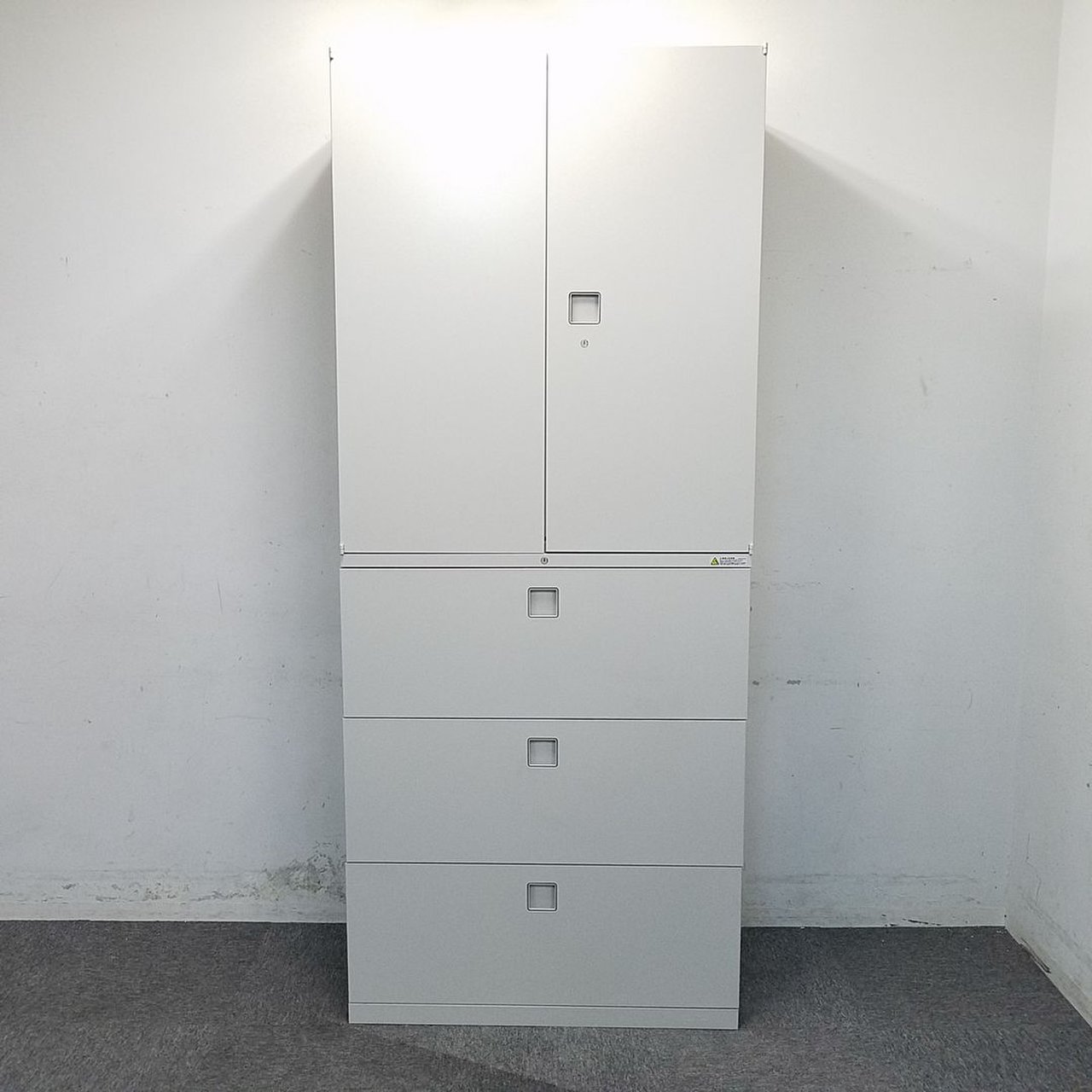 - 一部不具合ありそ引出の開閉不可、施錠不可、棚板無しといったの書庫の本来の効用を果たすための機能以外の一部が使用不可(例、扉、引出の開閉がしづらいなどがある。 )