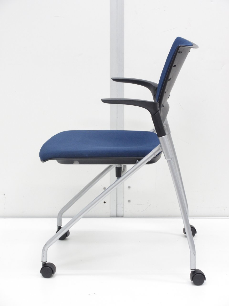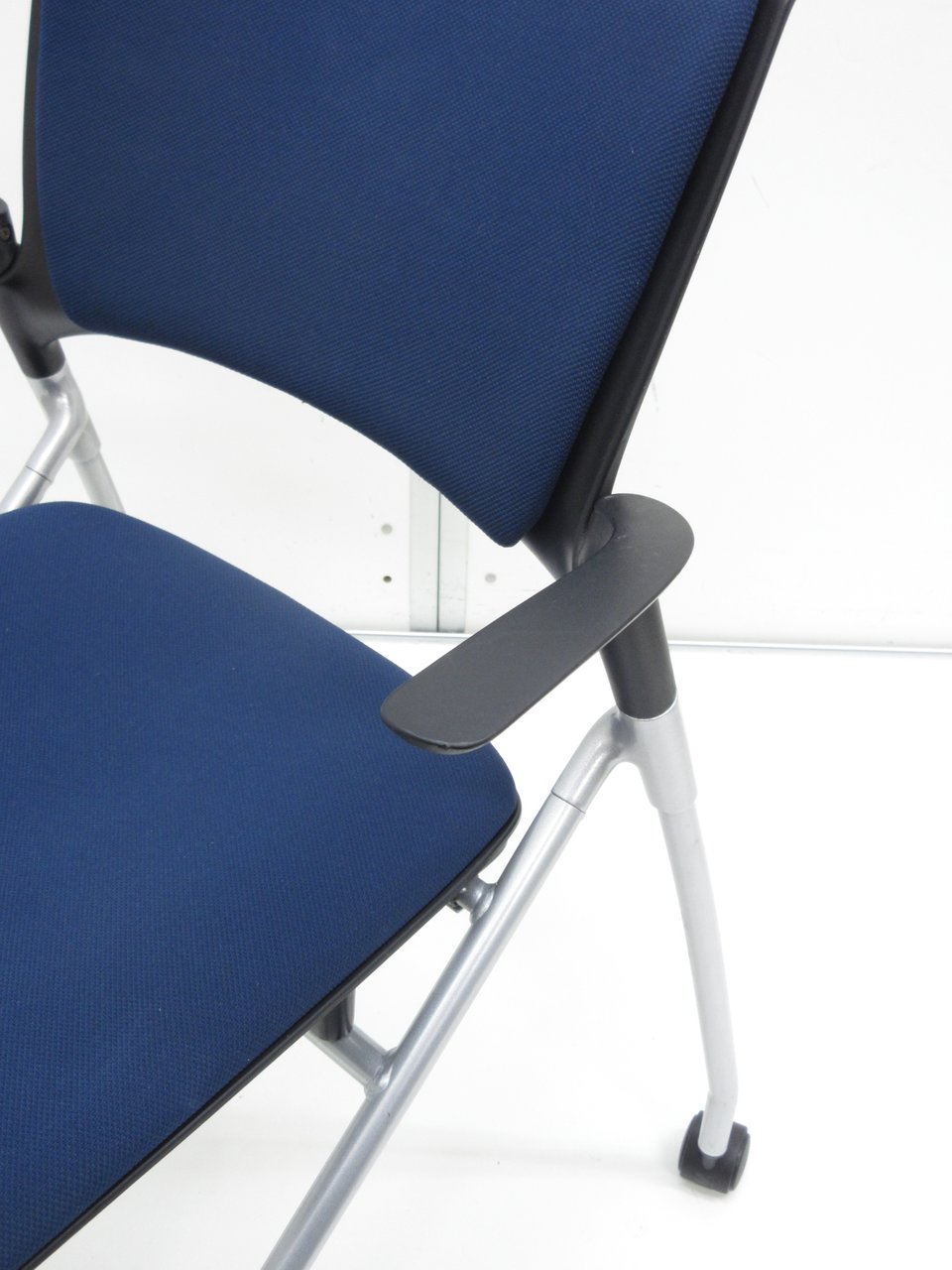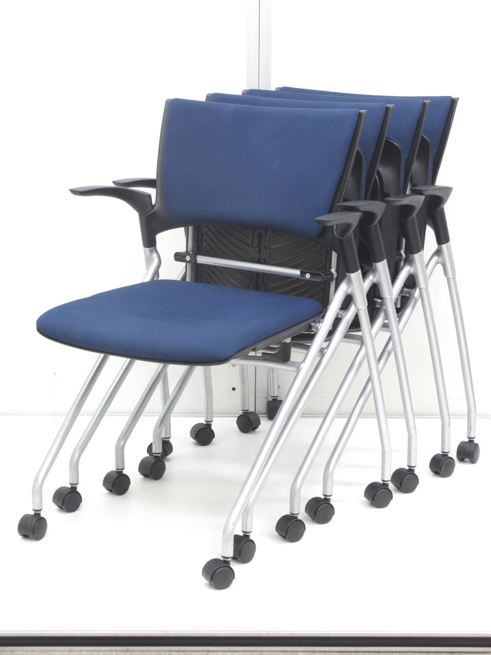 【肘付きミーティングチェア】座面たたみ式の便利品!お洒落なネイビー!在庫がある店舗一覧