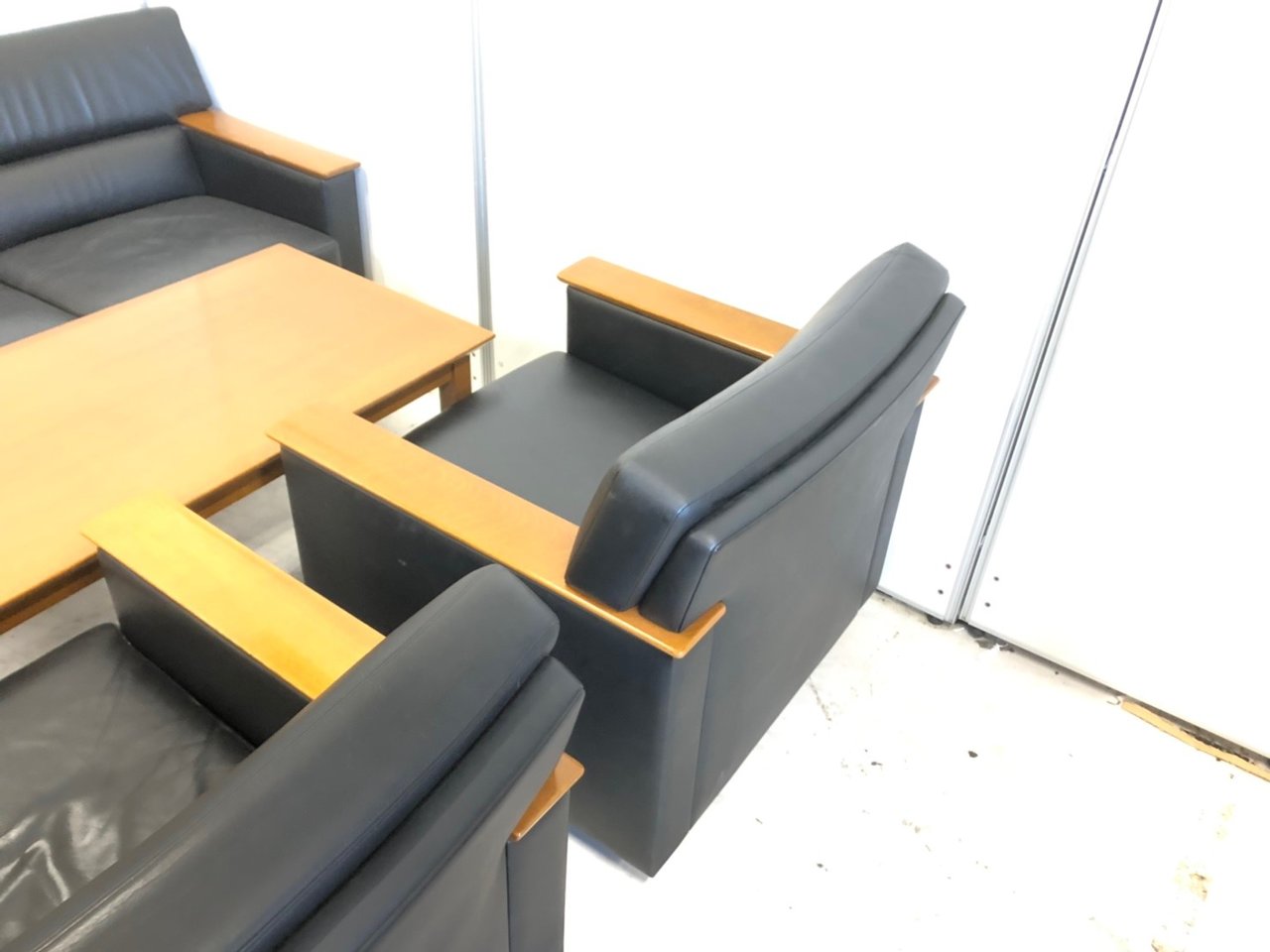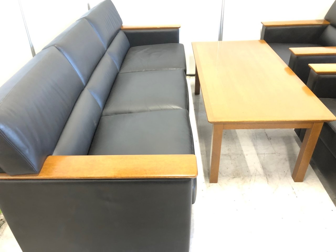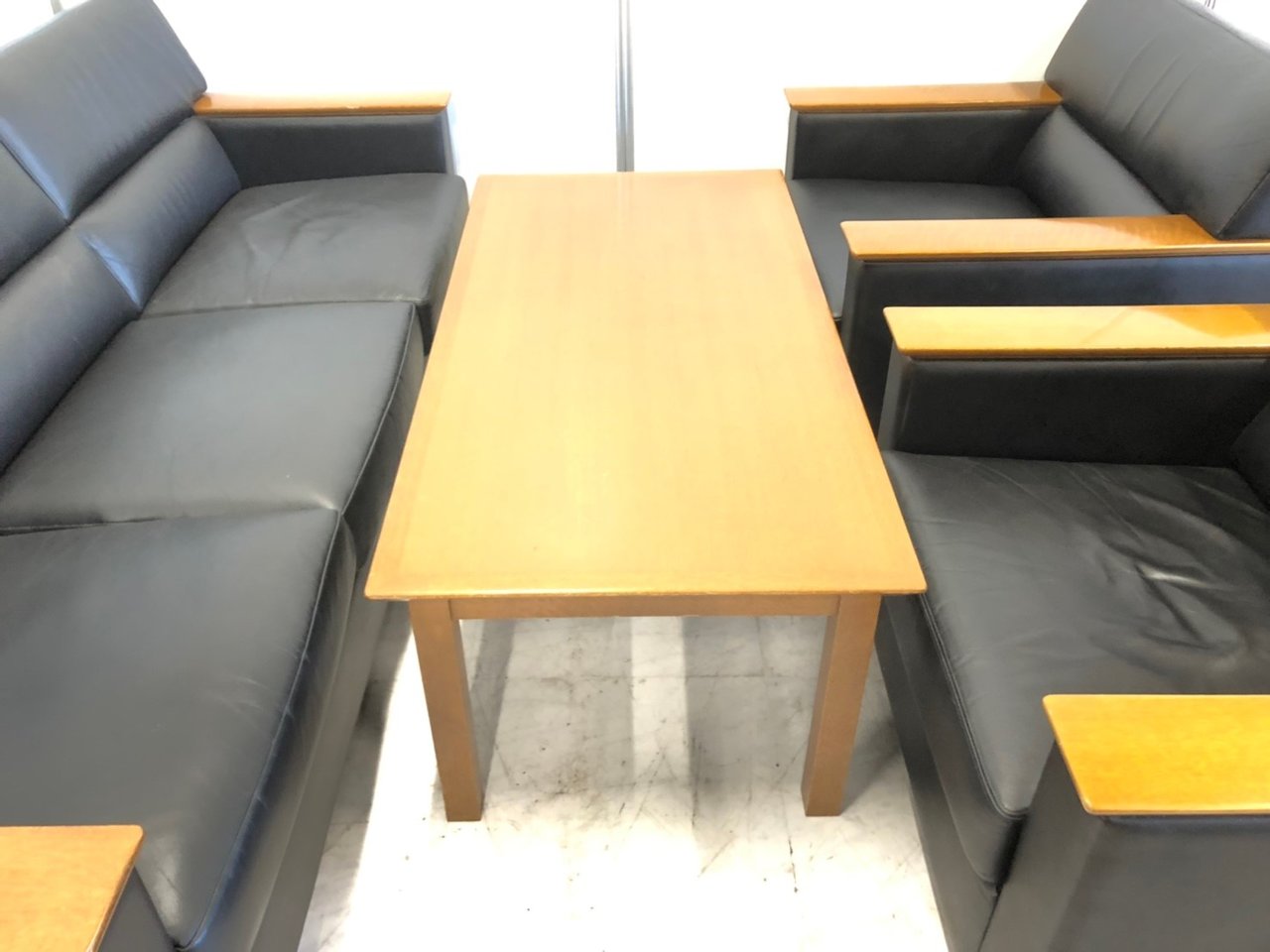 【落ち着いた雰囲気の応接セット!】重厚感溢れるデザインのソファで大切なお客様を招きましょう! 【ノーブランド品、一部使用感有】- 立川・八王子店