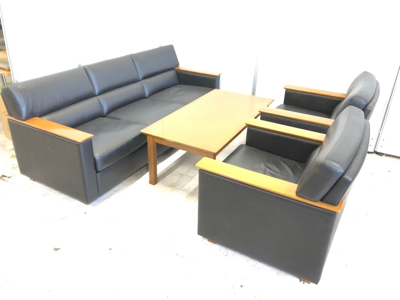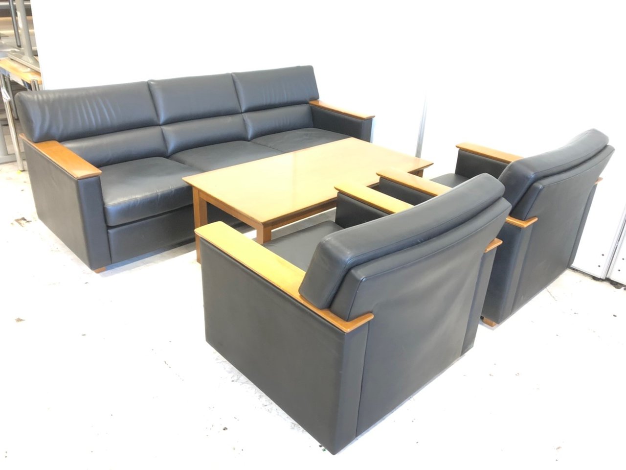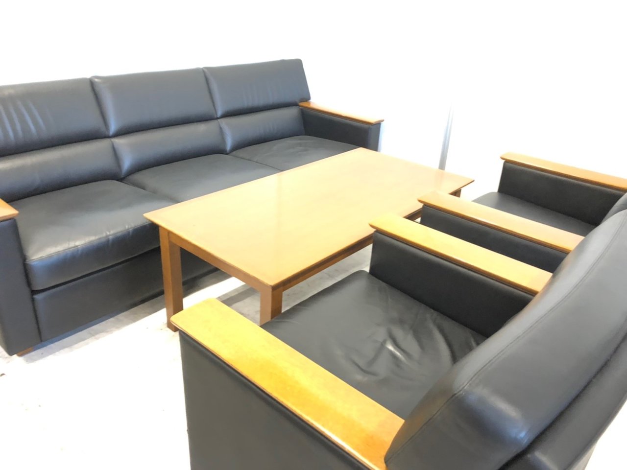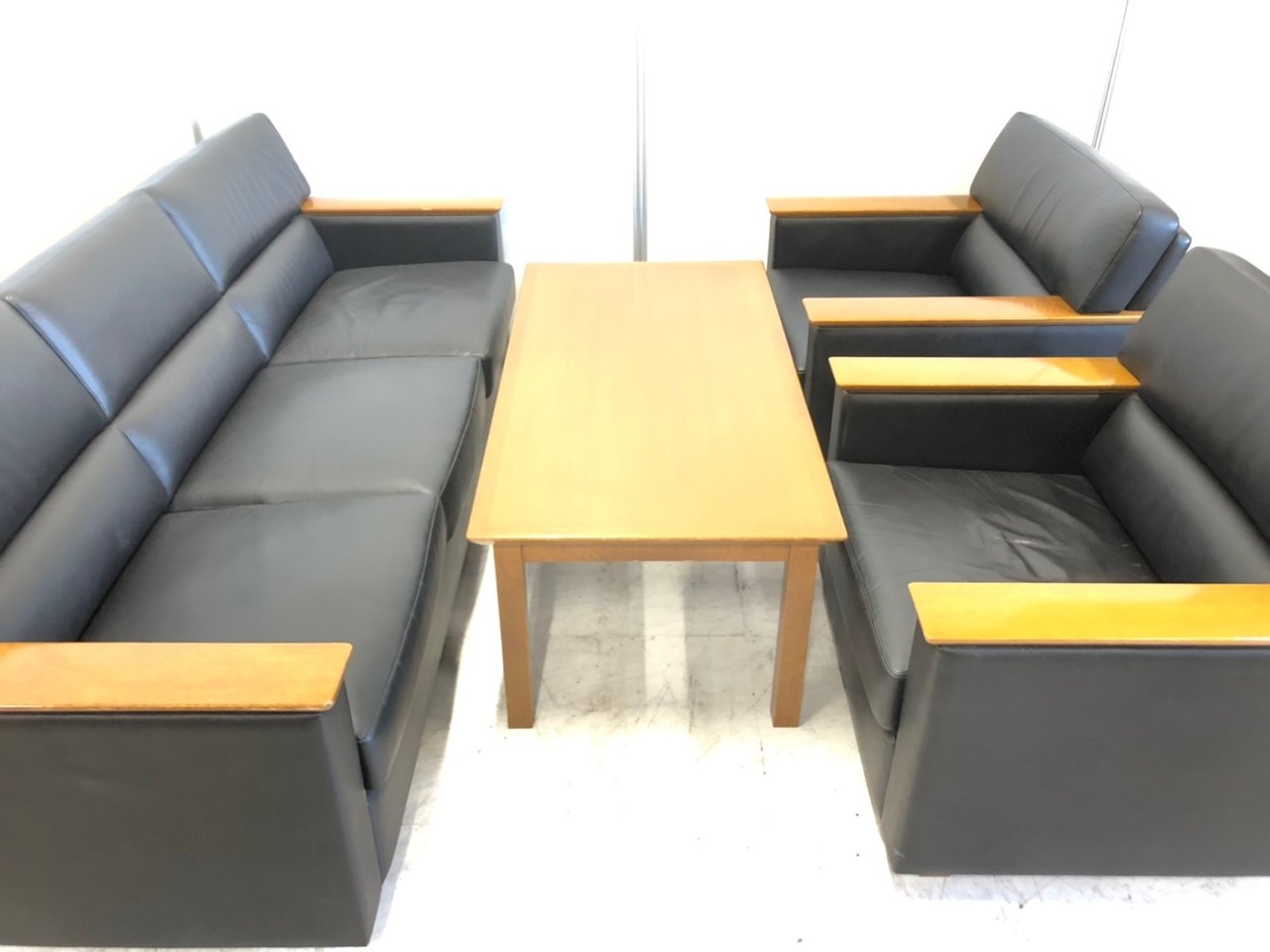 【落ち着いた雰囲気の応接セット!】重厚感溢れるデザインのソファで大切なお客様を招きましょう! 【ノーブランド品、一部使用感有】- 立川・八王子店