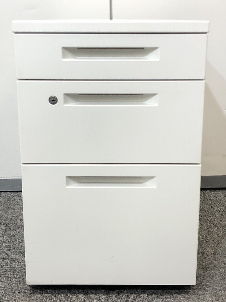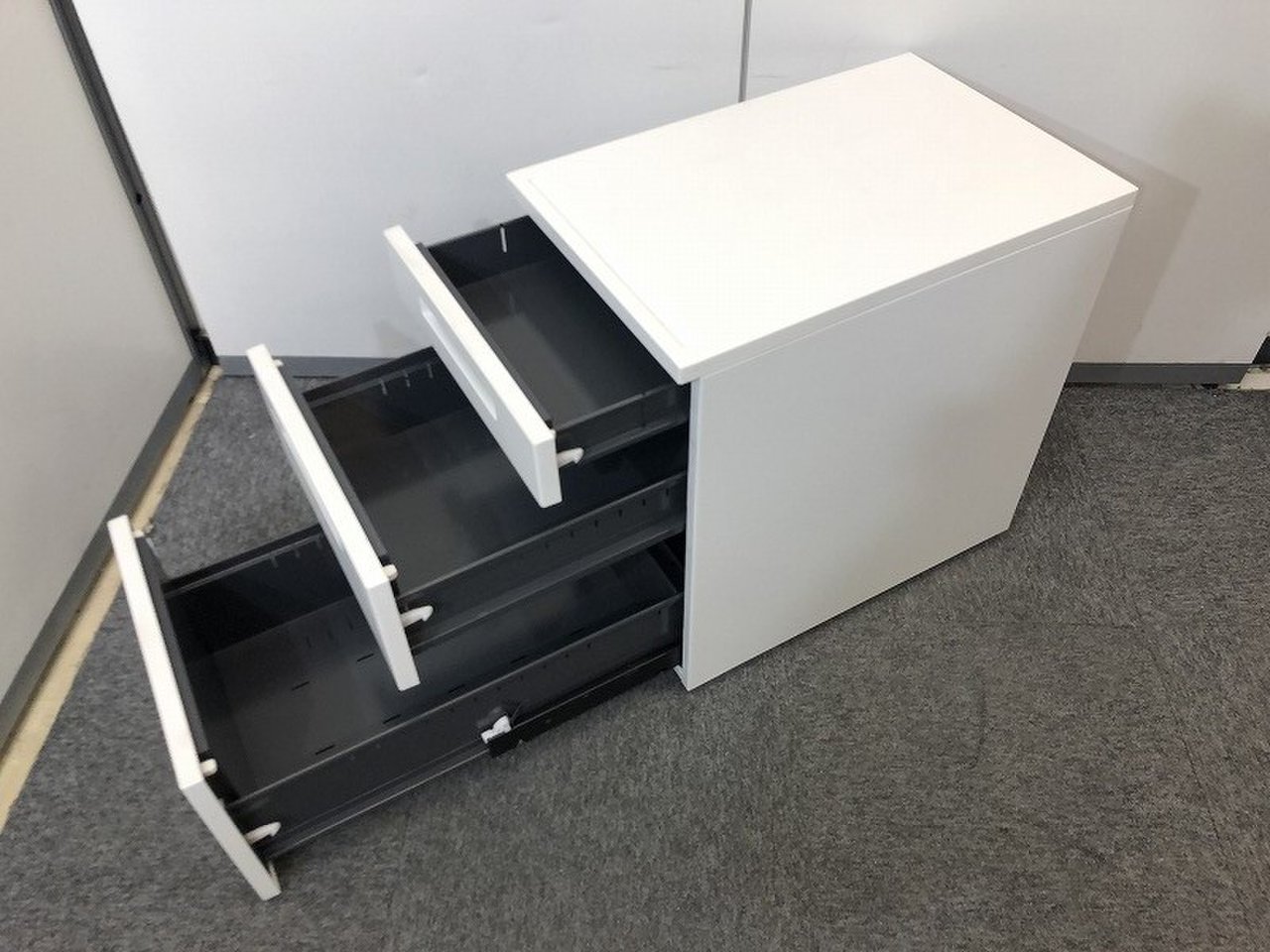 - 一部不具合ありその脇机・ワゴンの本来の効用を果たすための機能以外の一部が使用不可な状態。(例、引出が開閉しづらい、 キャスターロック機能使用不可、ラッチ不良 等がある。)