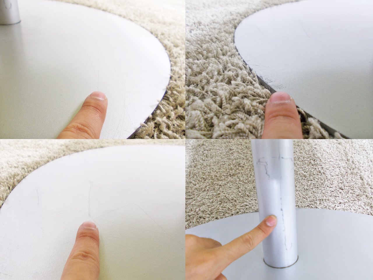 - 若干ありソファの場合、破け、ホツレ、へたり、しわ等が一部ある。(例、背もたれ、肘かけ、座面等にある。)センターテーブルの場合、傷・凹みが一部ある。(例、天板、 脚にある。)