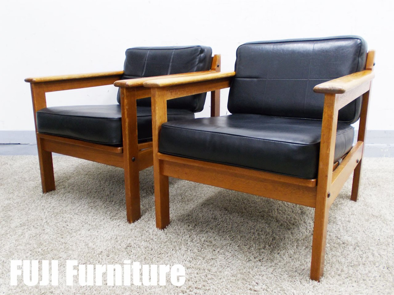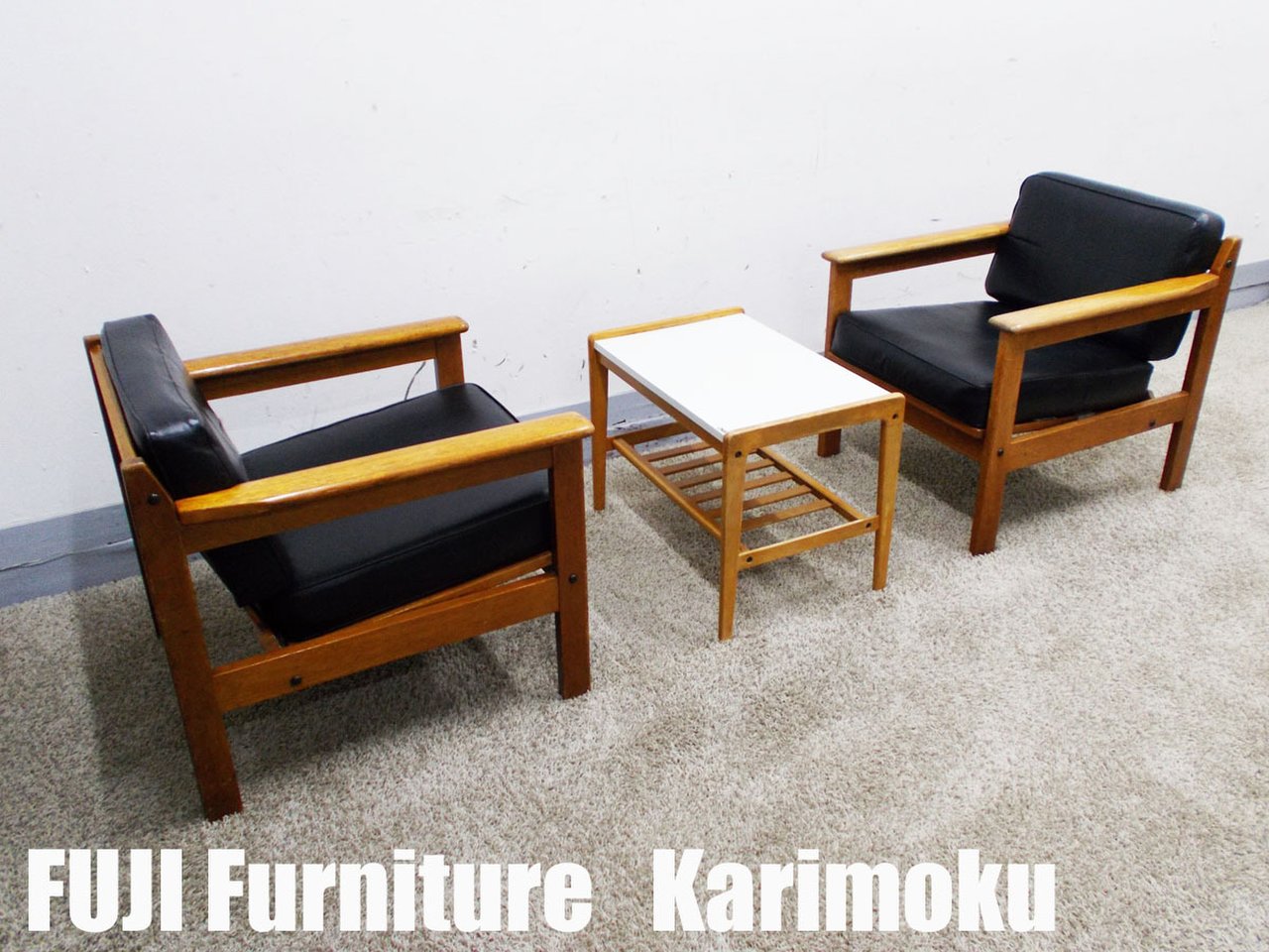 FUJI FURNITURE / 冨士ファニチア ロビーチェア2脚セット+karimoku/カリモク センターテーブル 黒 北欧- デザイナーズ家具センター