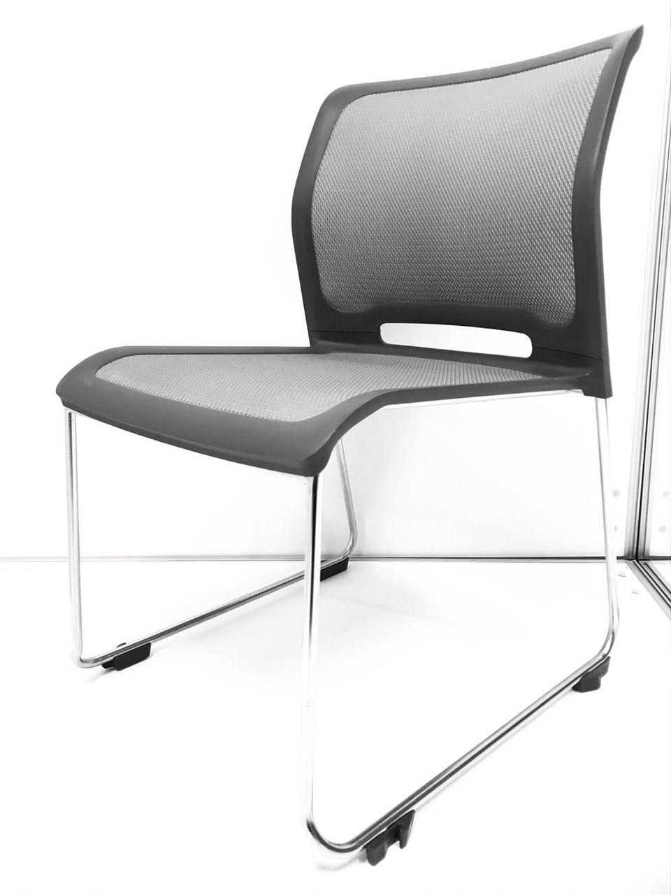 【メッシュ】背面、座面ともにすべてがメッシュ仕様。 ◆コクヨ製 ◆スタッキングチェア ◆グレー- 横浜本店