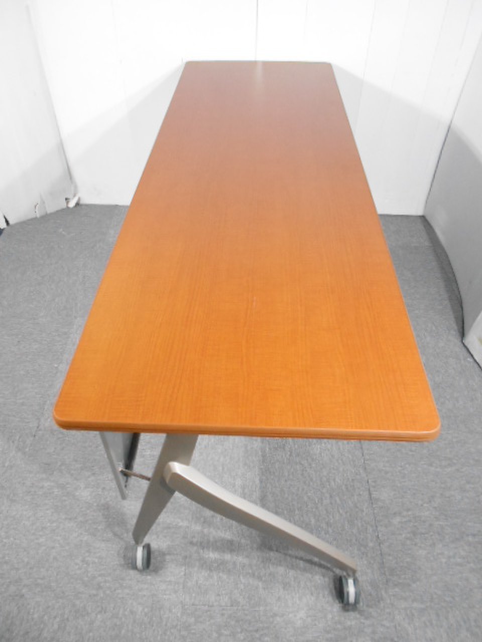 - 一部不具合あり天板歪み、アジャスター無し、キャスター使用不可ようなそのテーブルの本来の効用を果たすための機能以外の一部が使用不可な状態。(例、キャスターロッ ク機能使用不可、棚板無し等がある。)