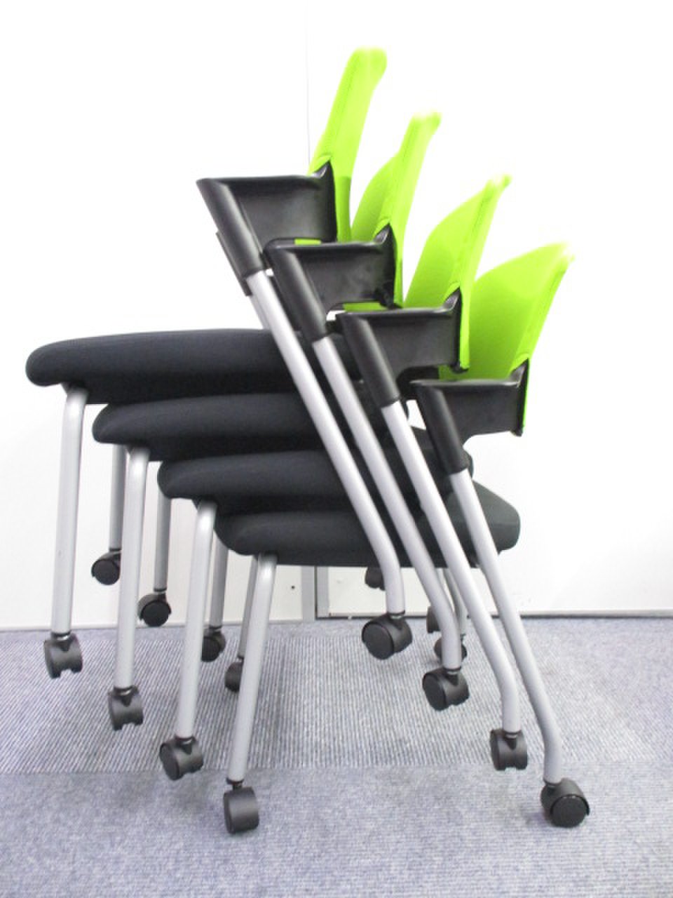 【KS】【30脚揃います!】【4脚セット!】ライトグリーンで明るい会議室づくりをしませんか!重ねてコンパクト収納可能な万能チェア!- 茨城南店