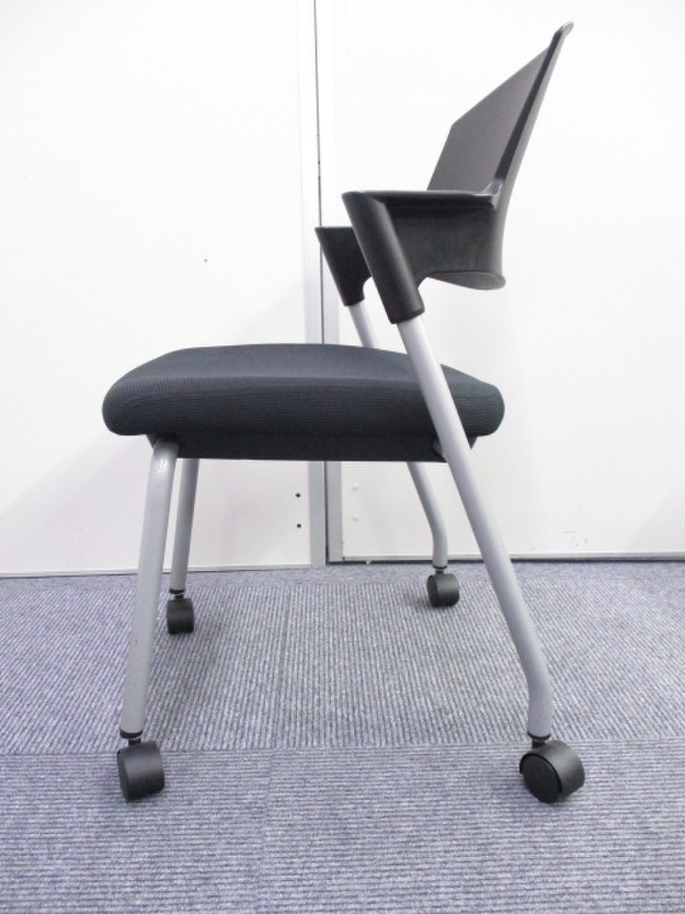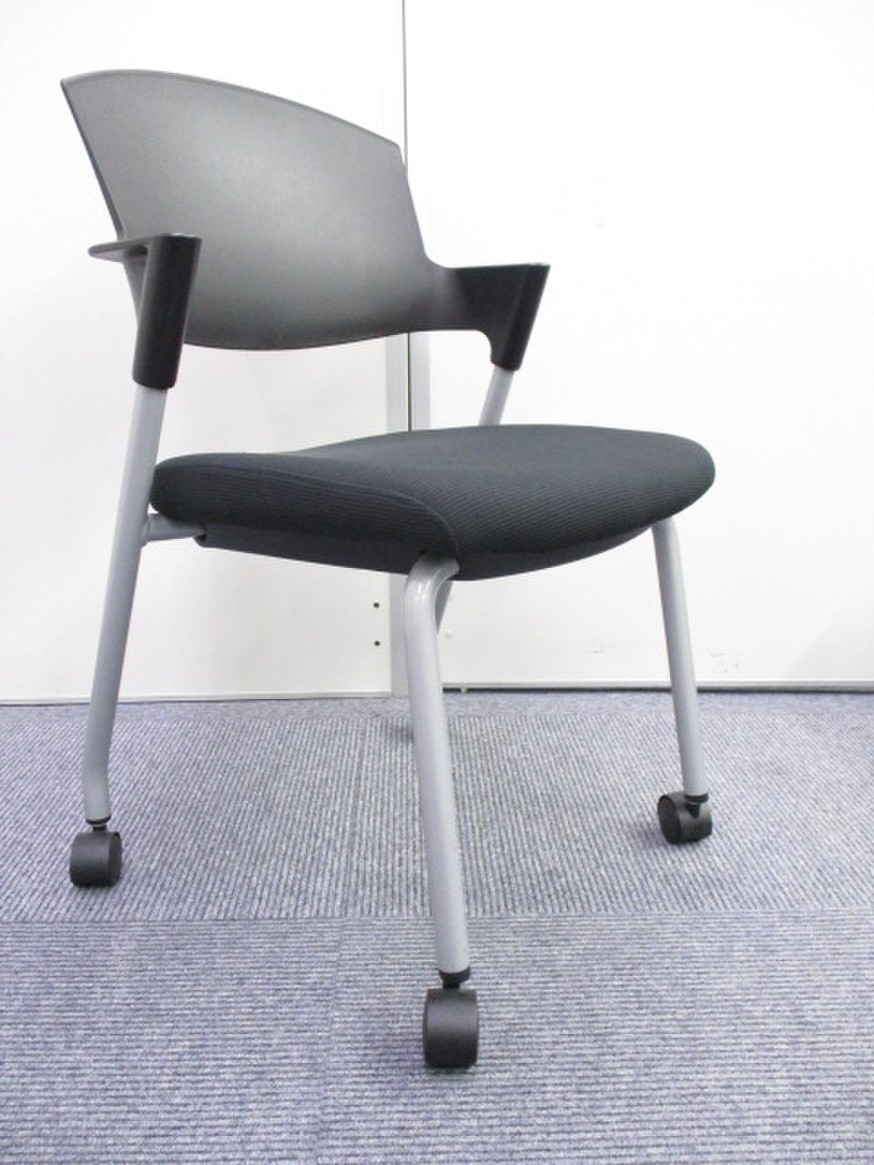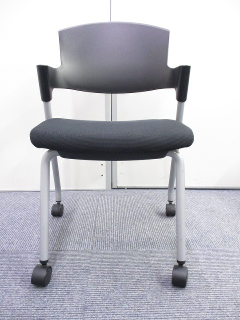【シンプルスマートなスタッキングチェア!分厚いクッションで長時間でも快適な座り心地!】■スタッキングチェア 肘付ミーティングチェア ■固定肘 ■キャスター付 ■ブラック ■背面樹脂/コクヨ(KOKUYO/プロッティ