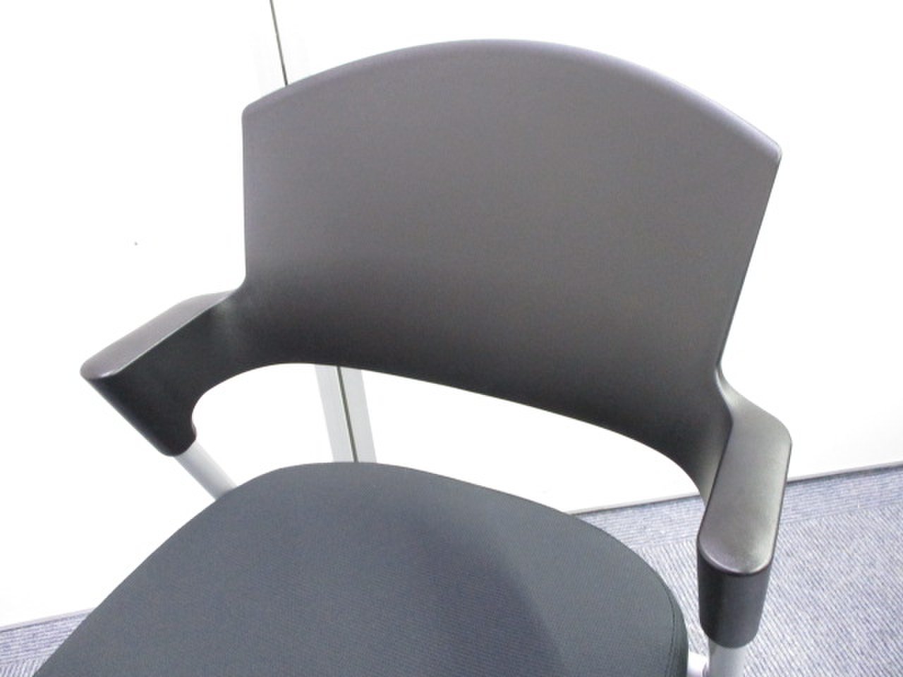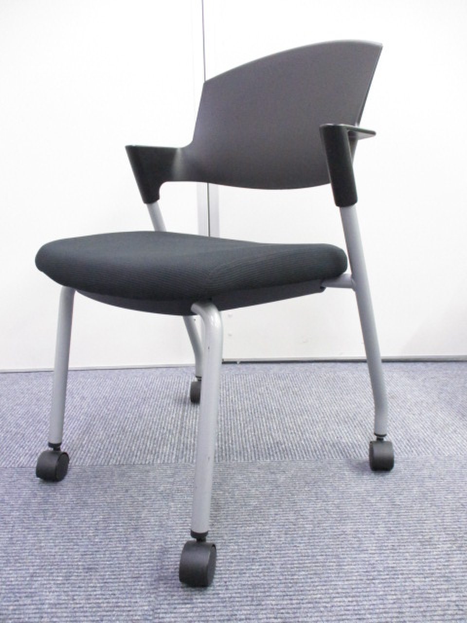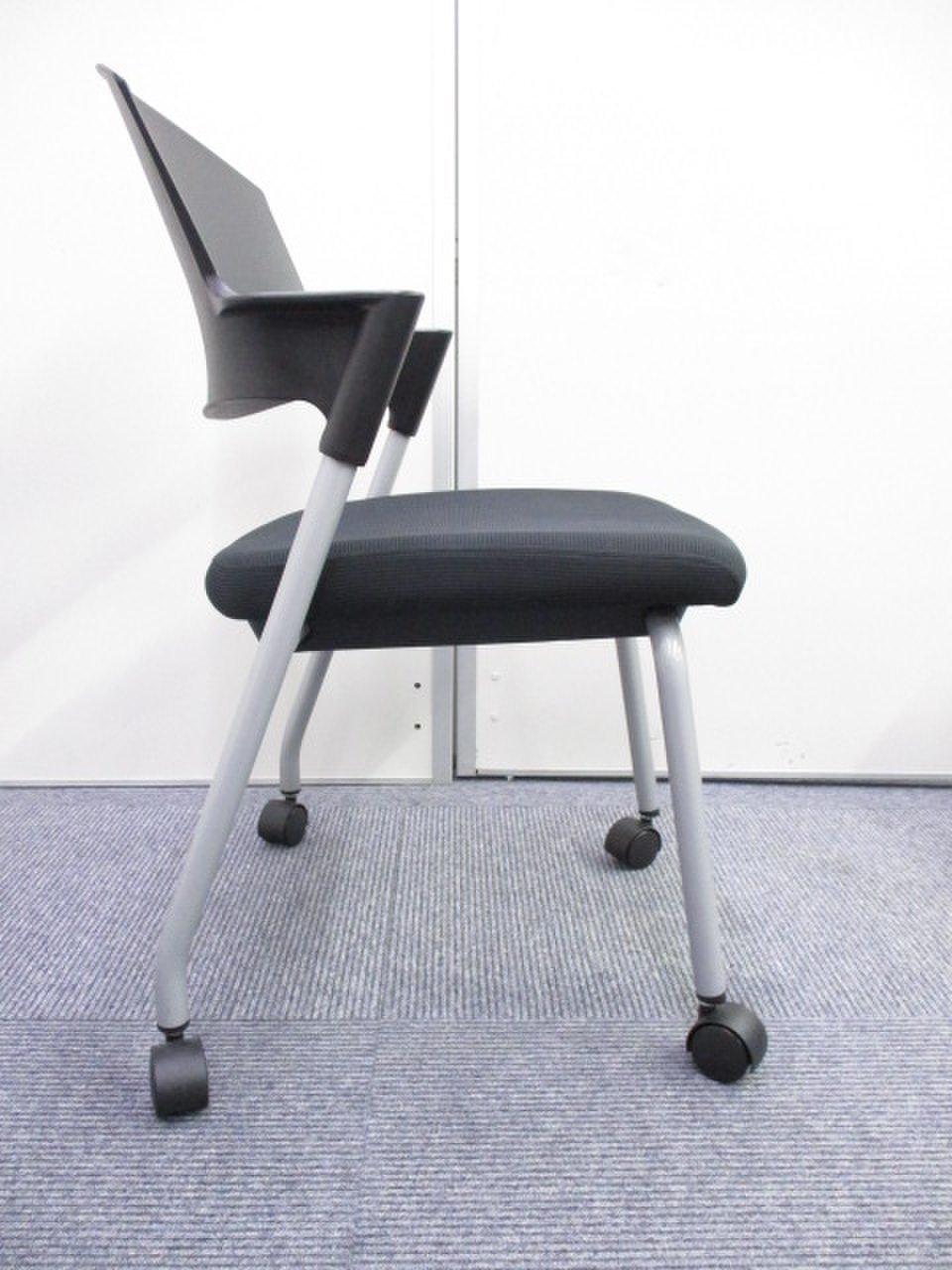【シンプルスマートなスタッキングチェア!分厚いクッションで長時間でも快適な座り心地!】■スタッキングチェア 肘付ミーティングチェア ■固定肘 ■キャスター付 ■ブラック ■背面樹脂/コクヨ(KOKUYO/プロッティ