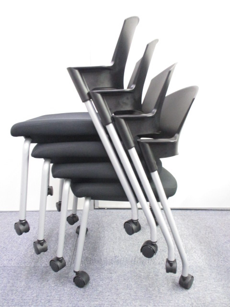 【セット商品(チェア×4脚)】【シンプルスマートなスタッキングチェア!分厚いクッションで長時間でも快適な座り心地!】/オススメ(おすすめ) /人気商品【弊社使用欄:A01037619】■スタッキングチェア 肘付ミーティングチェア ■固定肘 ■キャスター付 ■ブラック ■背面樹脂/コクヨ(KOKUYO/プロッティ