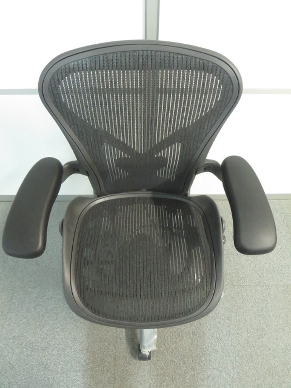 【★状態イマイチのためお安く!】■ハーマンミラー製 アーロンチェア Bサイズ 固定肘 ※キズあり・ランバーサポート無・昇降ガス圧弱めのためお安く!【訳あり特価品】