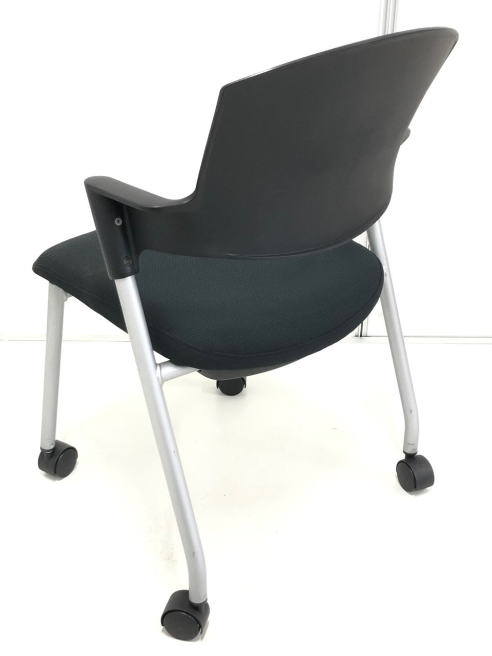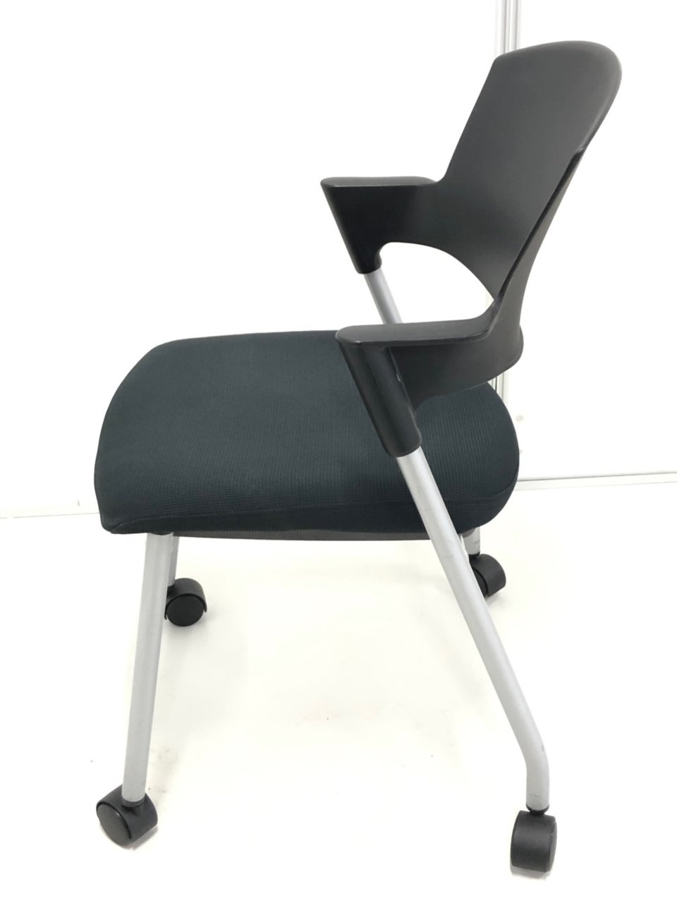 【シンプルスマートなスタッキングチェア!分厚いクッションで長時間でも快適な座り心地!】■スタッキングチェア 肘付ミーティングチェア ■固定肘 ■キャスター付 ■ブラック ■背面樹脂/コクヨ(KOKUYO/プロッティ