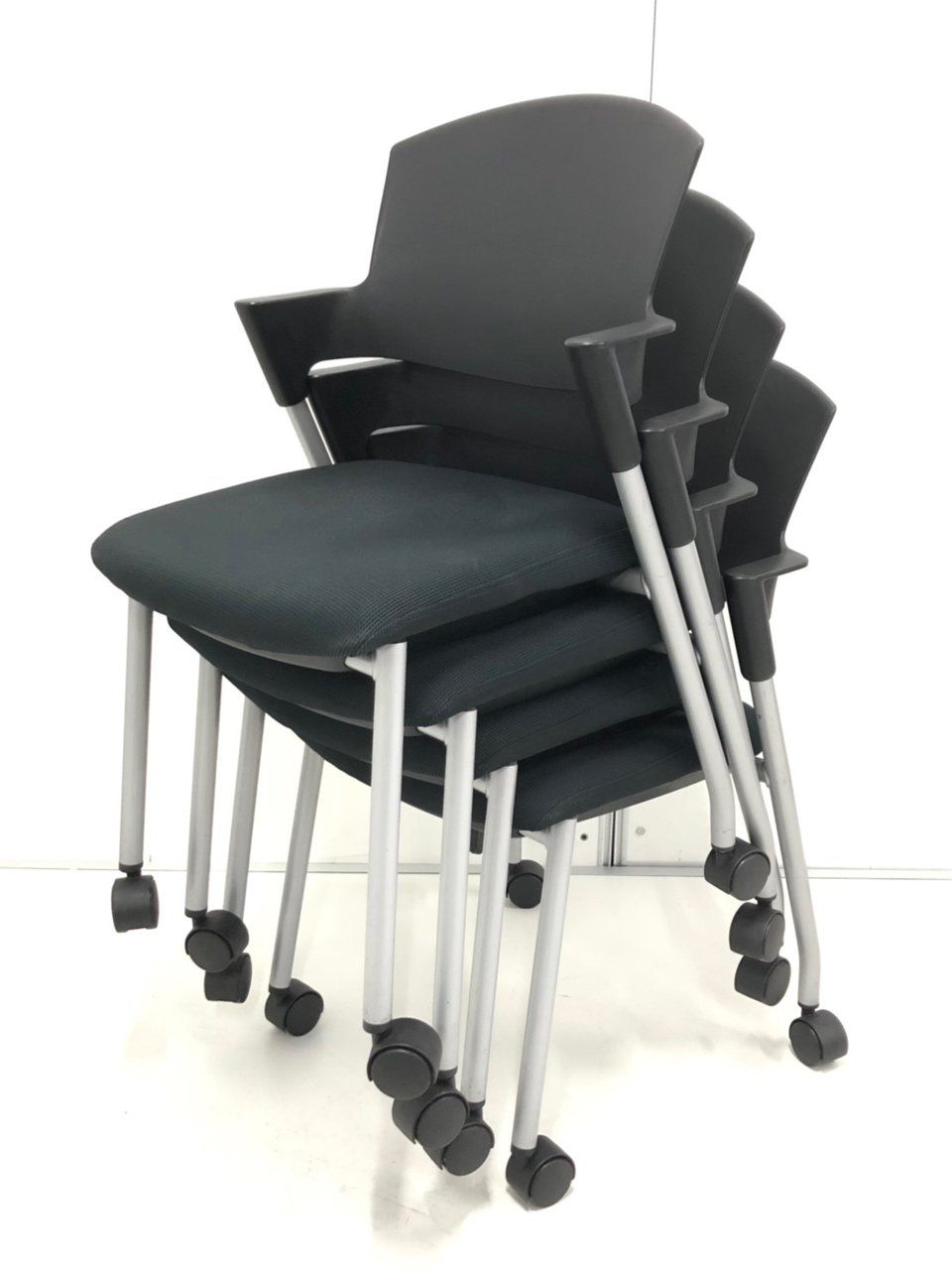 【セット商品(チェア×4脚)】【シンプルスマートなスタッキングチェア!分厚いクッションで長時間でも快適な座り心地!】/オススメ(おすすめ) /人気商品【弊社使用欄:A01037619】■スタッキングチェア 肘付ミーティングチェア ■固定肘 ■キャスター付 ■ブラック ■背面樹脂/コクヨ(KOKUYO/プロッティ