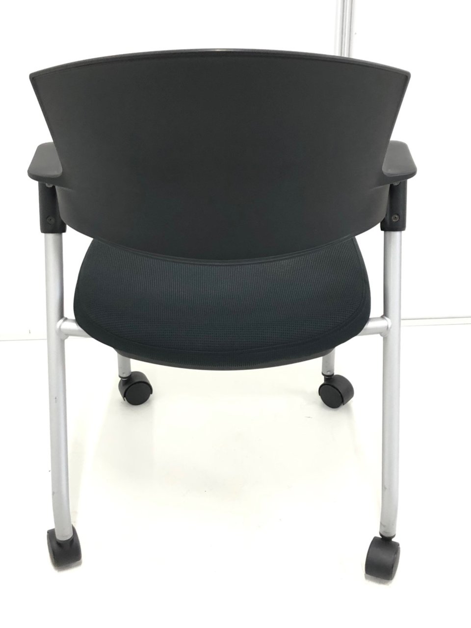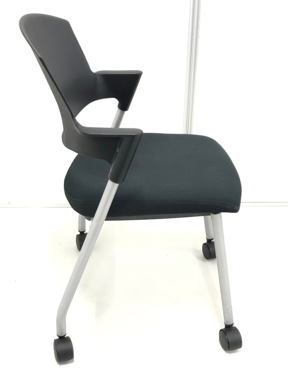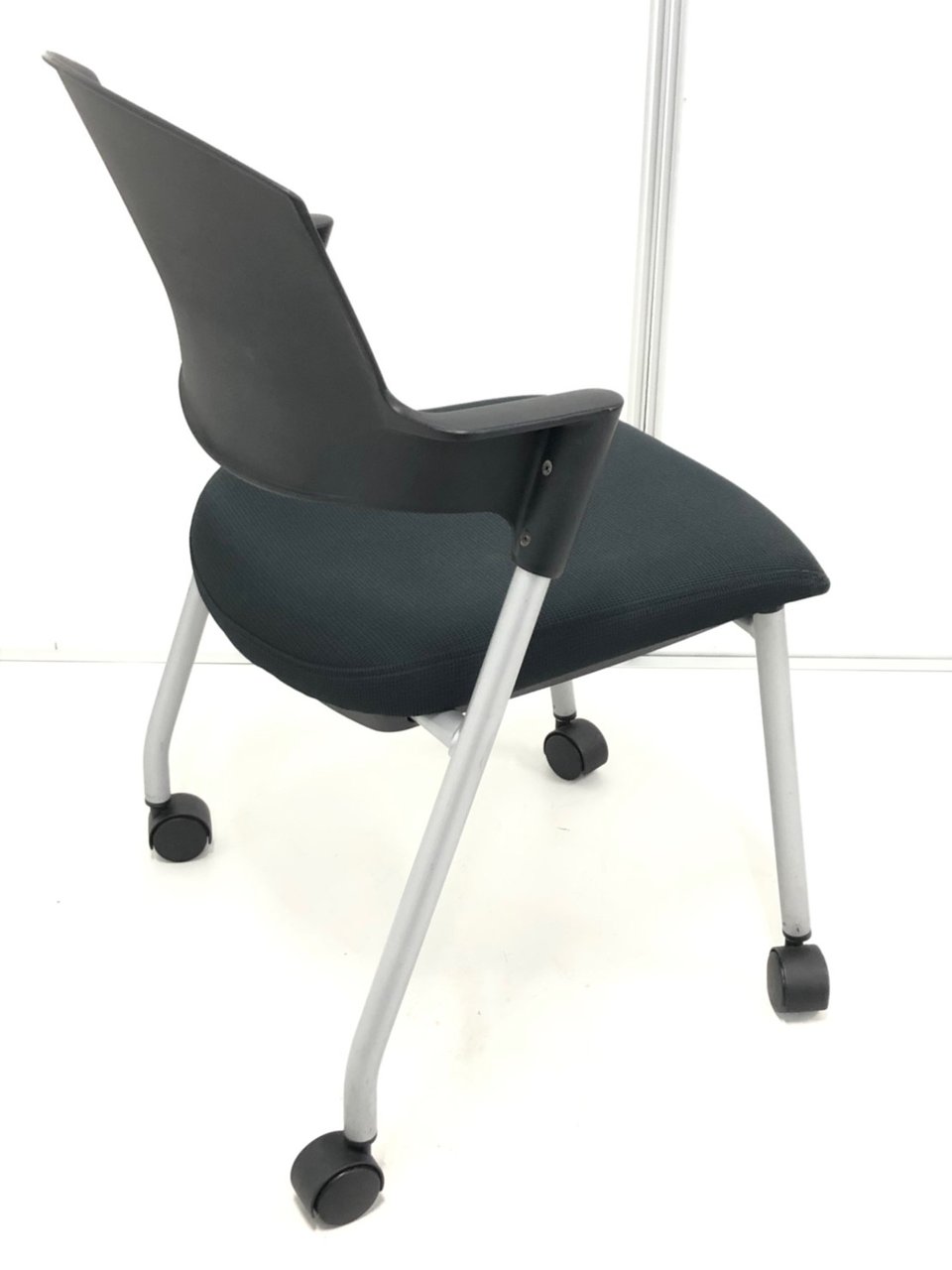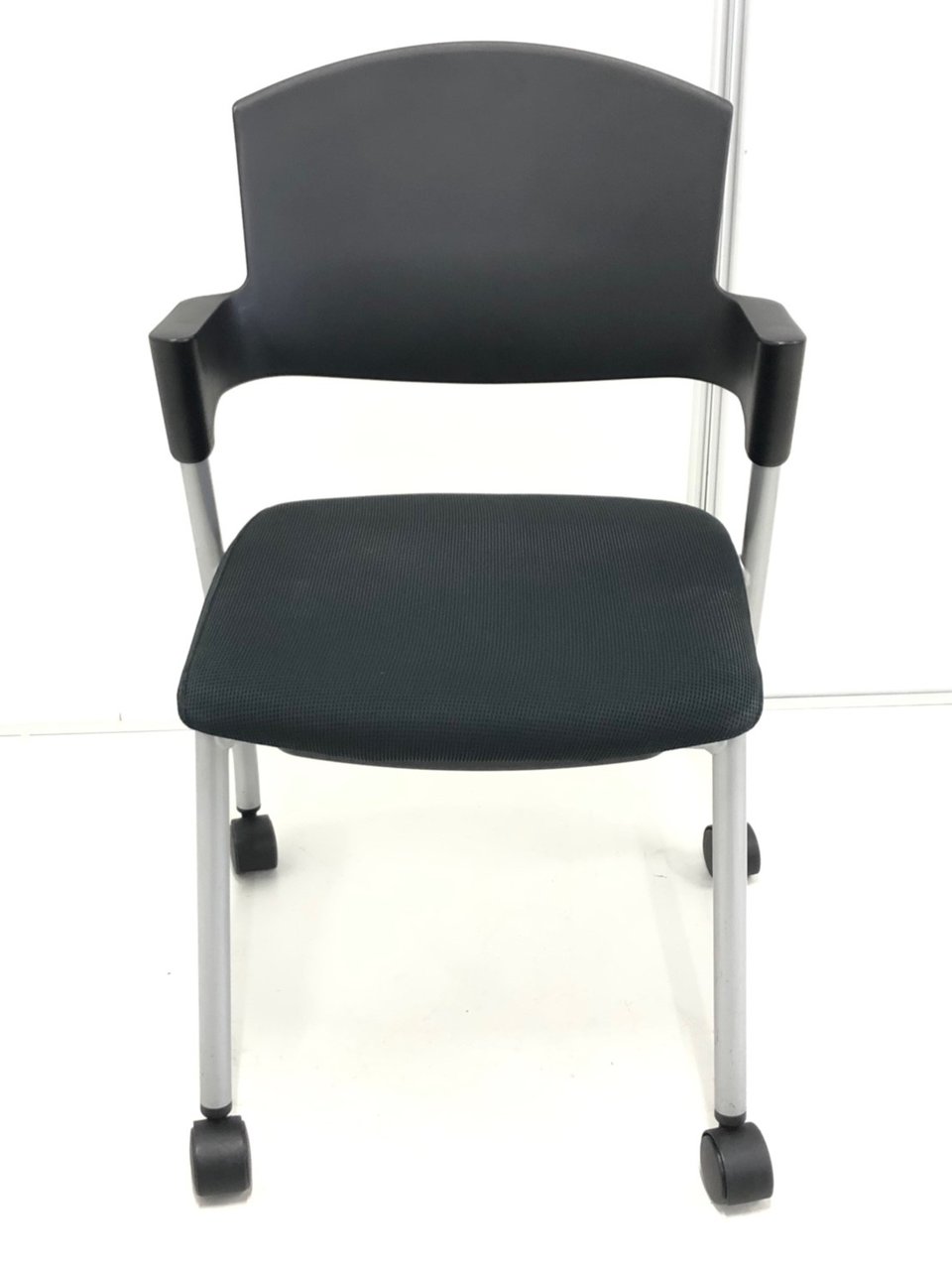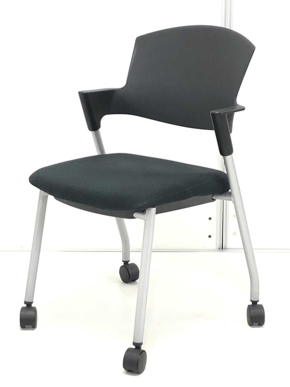 【シンプルスマートなスタッキングチェア!分厚いクッションで長時間でも快適な座り心地!】■スタッキングチェア 肘付ミーティングチェア ■固定肘 ■キャスター付 ■ブラック ■背面樹脂/コクヨ(KOKUYO/プロッティ