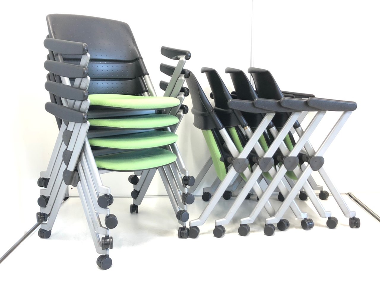 ☆★お買い得!8脚セット!☆★ 世にも珍しい! 2パターンの収納ができるミーティングチェア! 縦にも横にも重ねられます!- 立川・八王子店