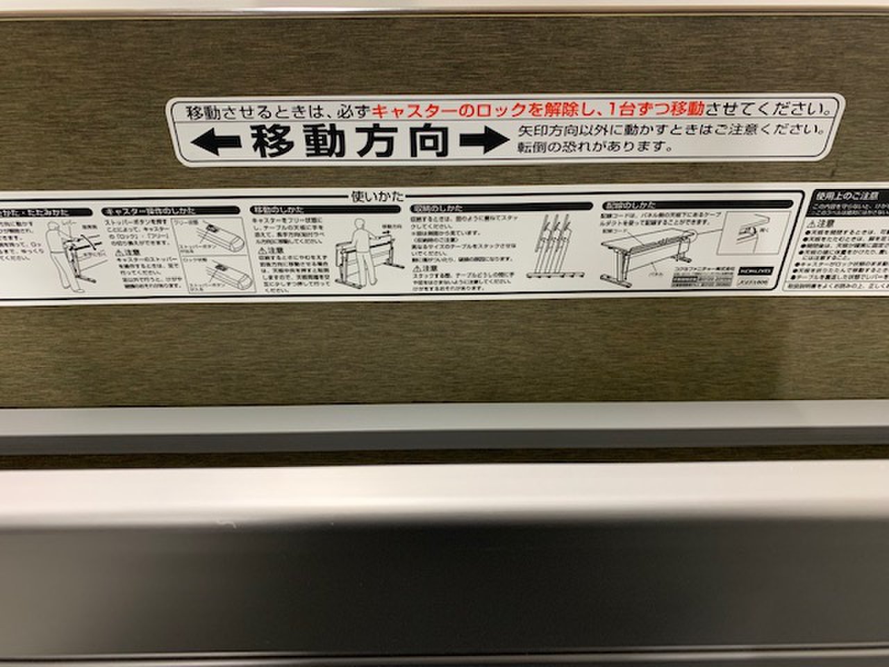 - 一部不具合あり天板歪み、アジャスター無し、キャスター使用不可ようなそのテーブルの本来の効用を果たすための機能以外の一部が使用不可な状態。(例、キャスターロッ ク機能使用不可、棚板無し等がある。)