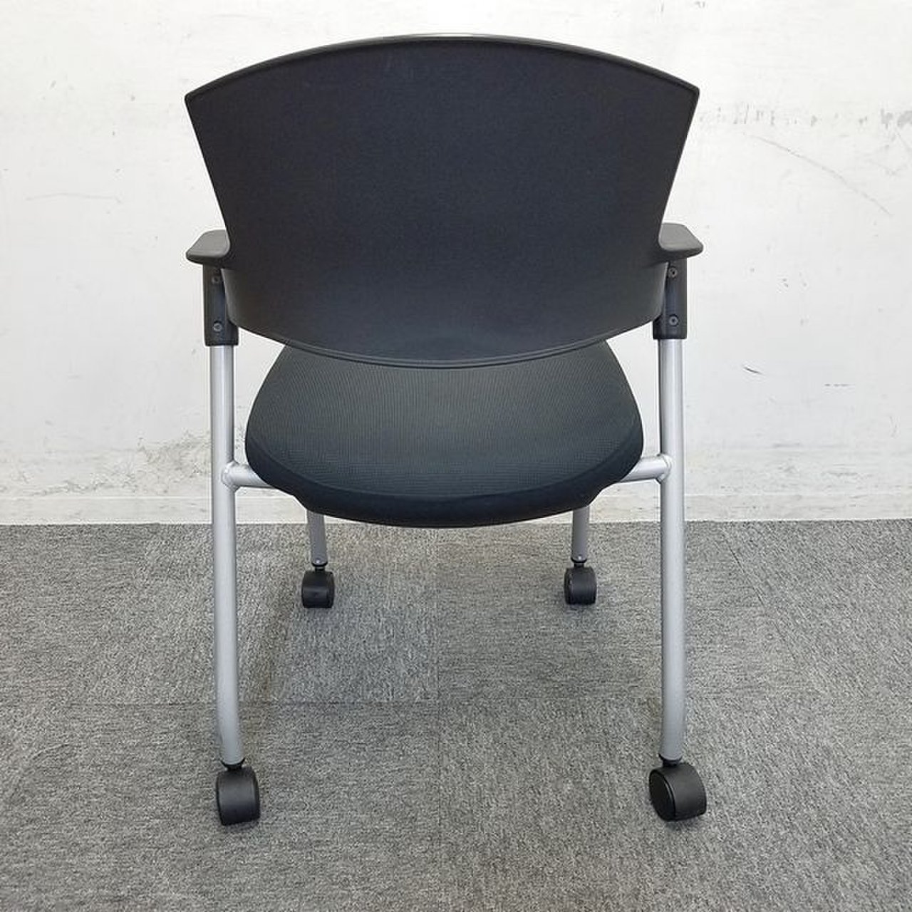 【シンプルスマートなスタッキングチェア!分厚いクッションで長時間でも快適な座り心地!】■スタッキングチェア 肘付ミーティングチェア ■固定肘 ■キャスター付 ■ブラック ■背面樹脂/コクヨ(KOKUYO/プロッティ