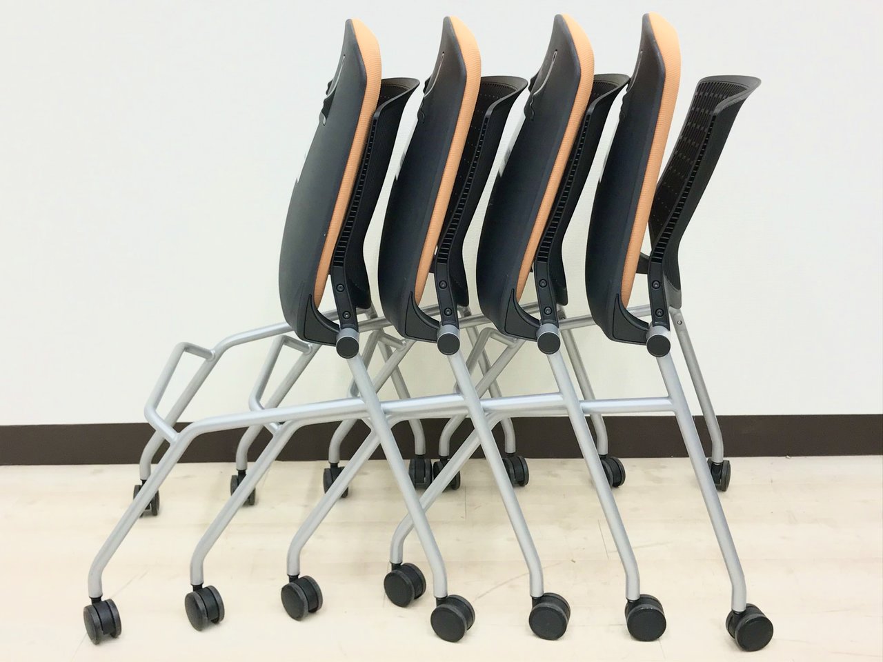 水平にスタッキングできるので、準備や片づけの際にイスを持ち上げる必要がなく、