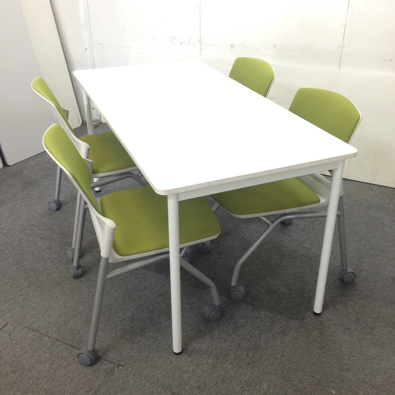 【ミーティングセット】ホワイト4本脚テーブル+国産ネスティングチェアのお得なセット☆- 豊中・尼崎店