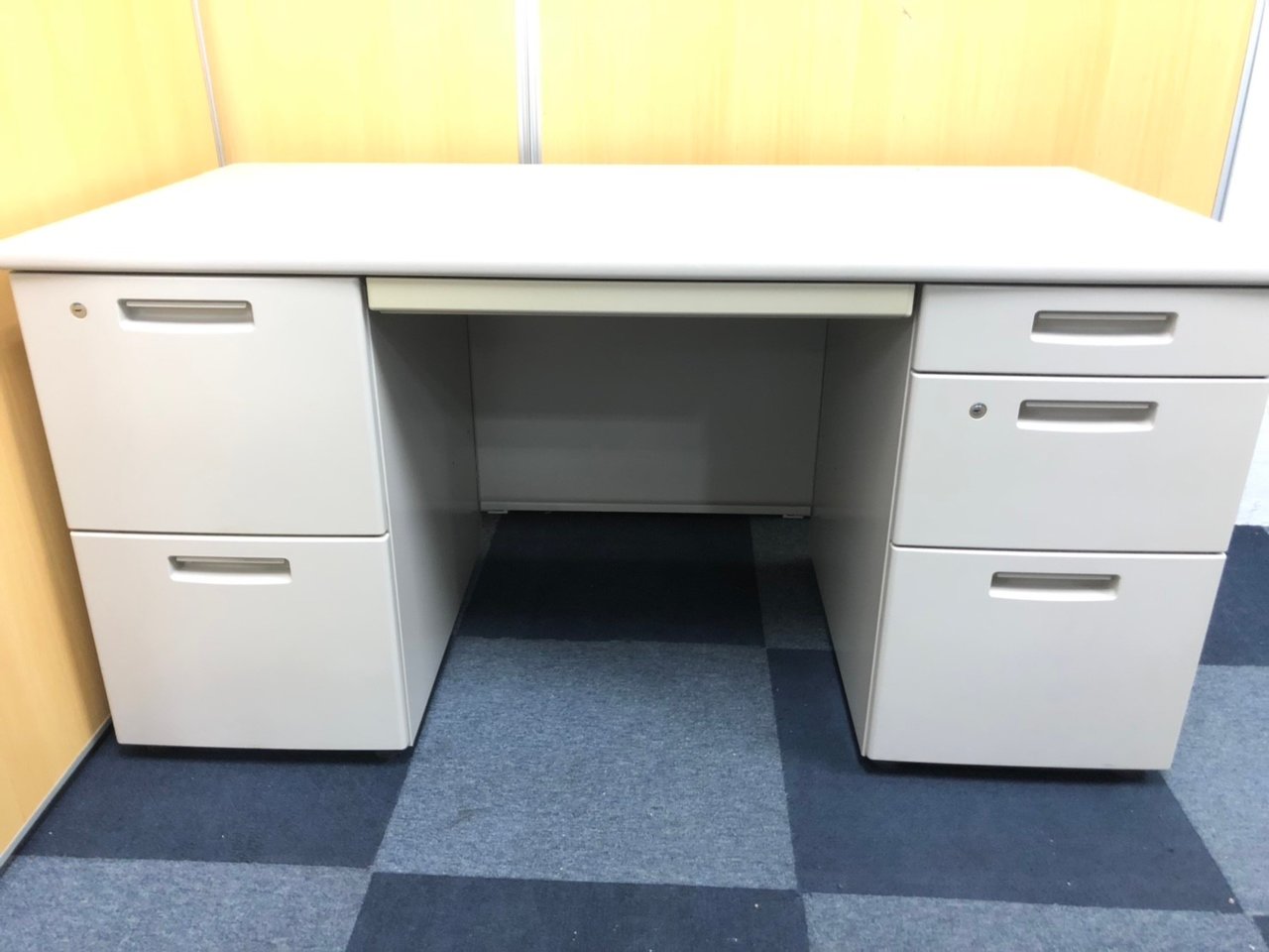 ★コクヨ製 BS ニューグレー W1400xD700xH700サイズ シリンダー スタンダードなデザインで高品質! 収納力を備えたスチールデスク! 上長様用の席にもおススメです! W1400両袖机!!