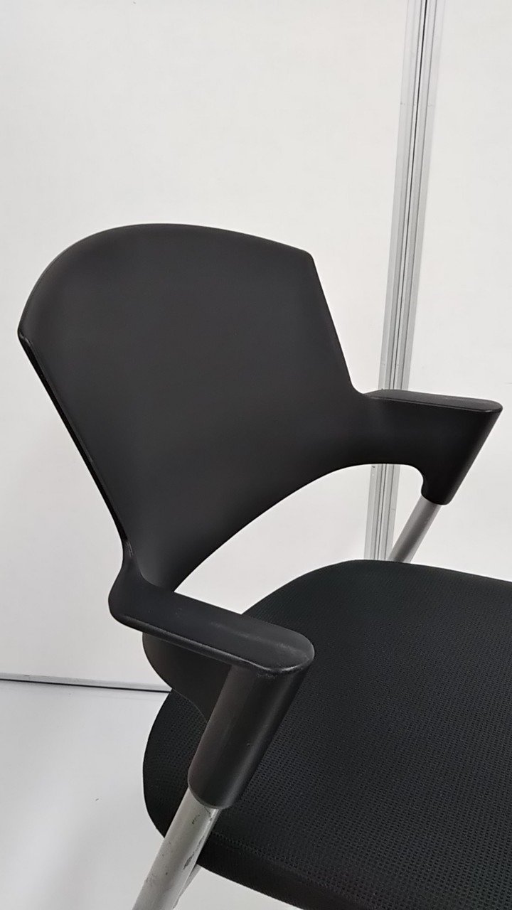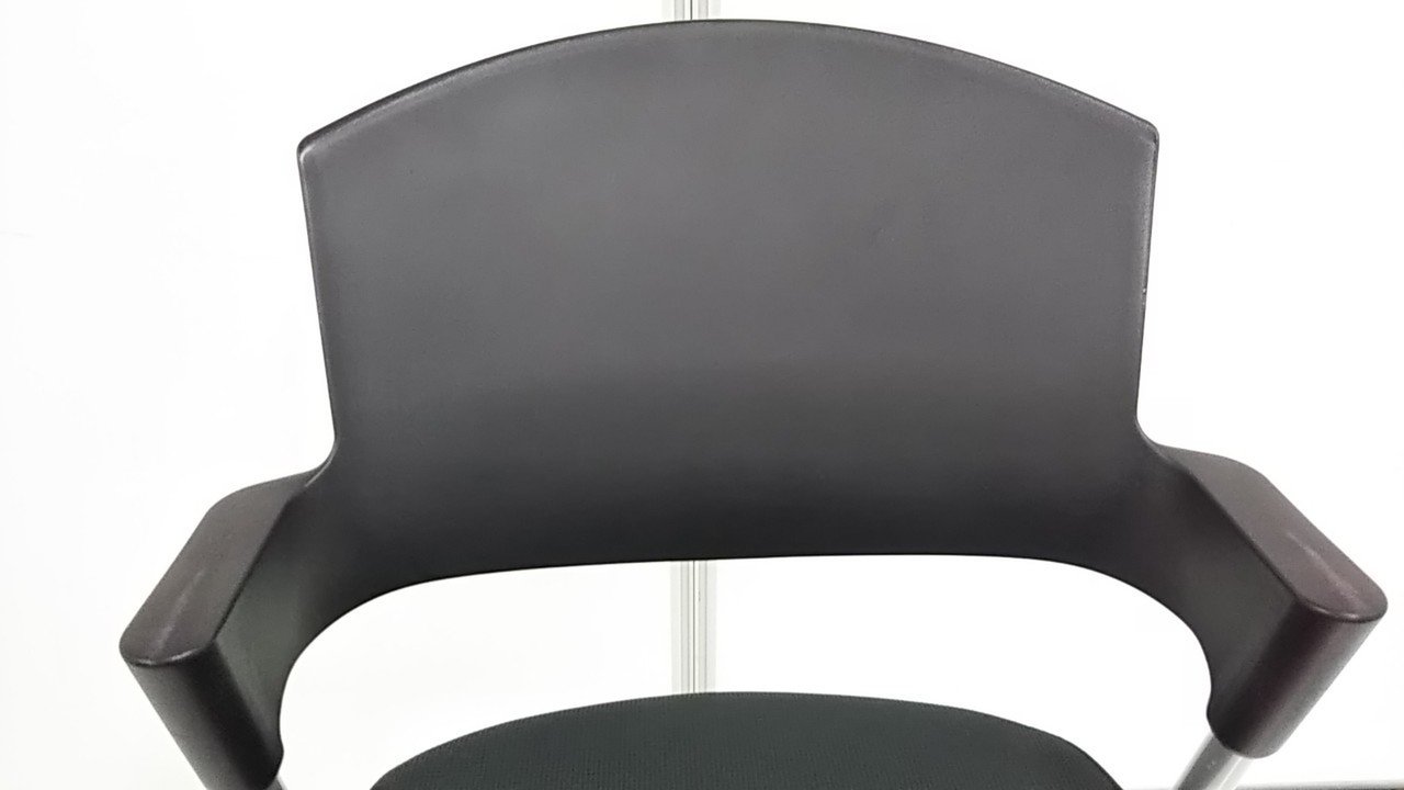 【シンプルスマートなスタッキングチェア!分厚いクッションで長時間でも快適な座り心地!】■スタッキングチェア 肘付ミーティングチェア ■固定肘 ■キャスター付 ■ブラック ■背面樹脂/コクヨ(KOKUYO/プロッティ