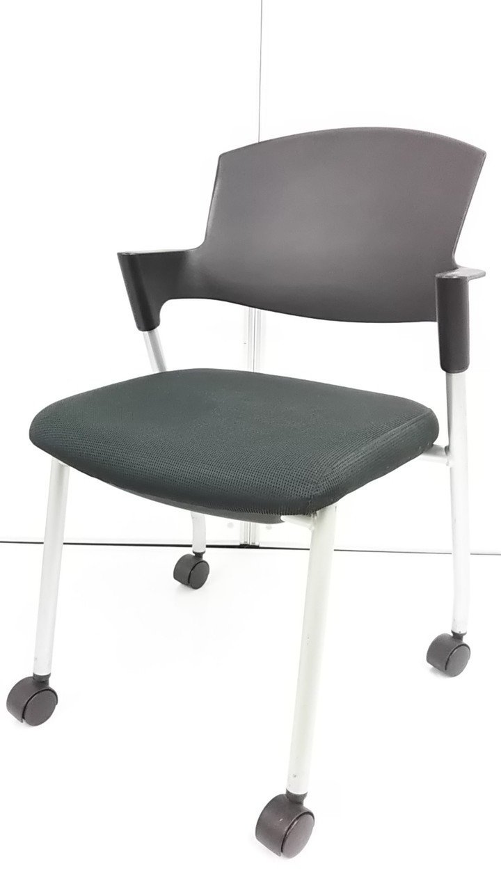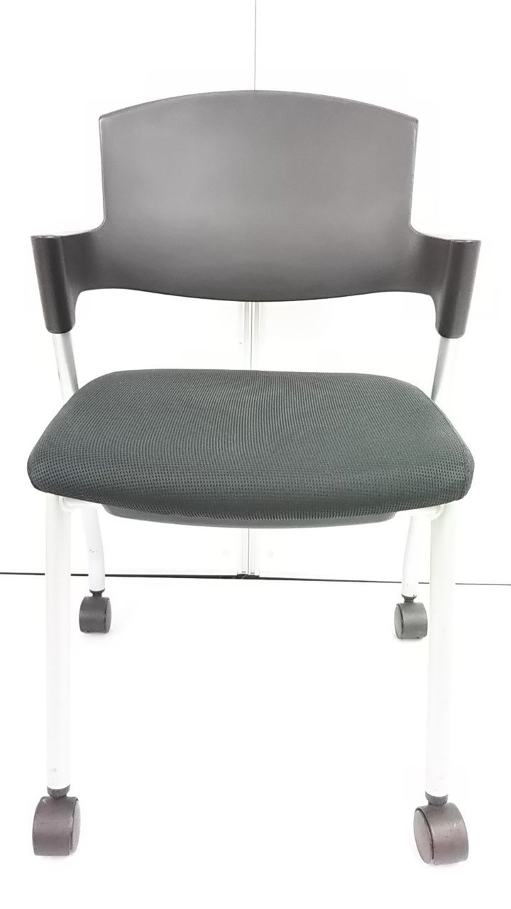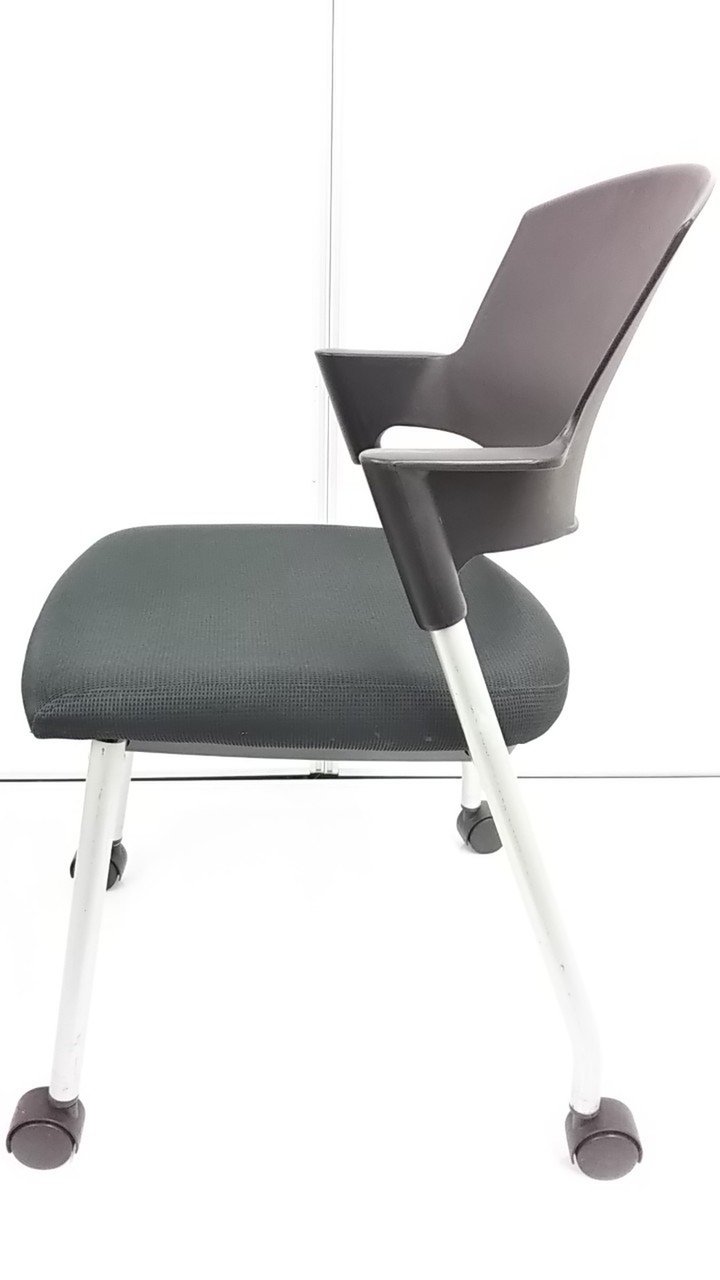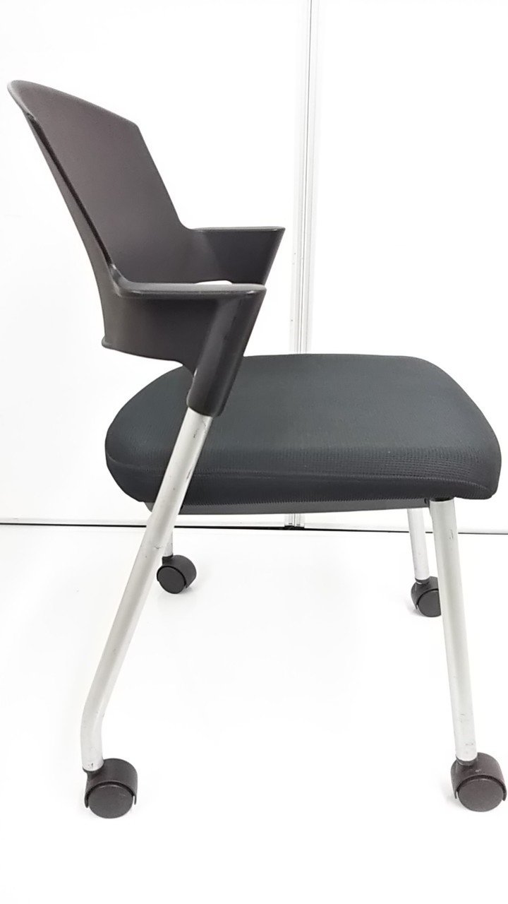 【シンプルスマートなスタッキングチェア!分厚いクッションで長時間でも快適な座り心地!】■スタッキングチェア 肘付ミーティングチェア ■固定肘 ■キャスター付 ■ブラック ■背面樹脂/コクヨ(KOKUYO/プロッティ