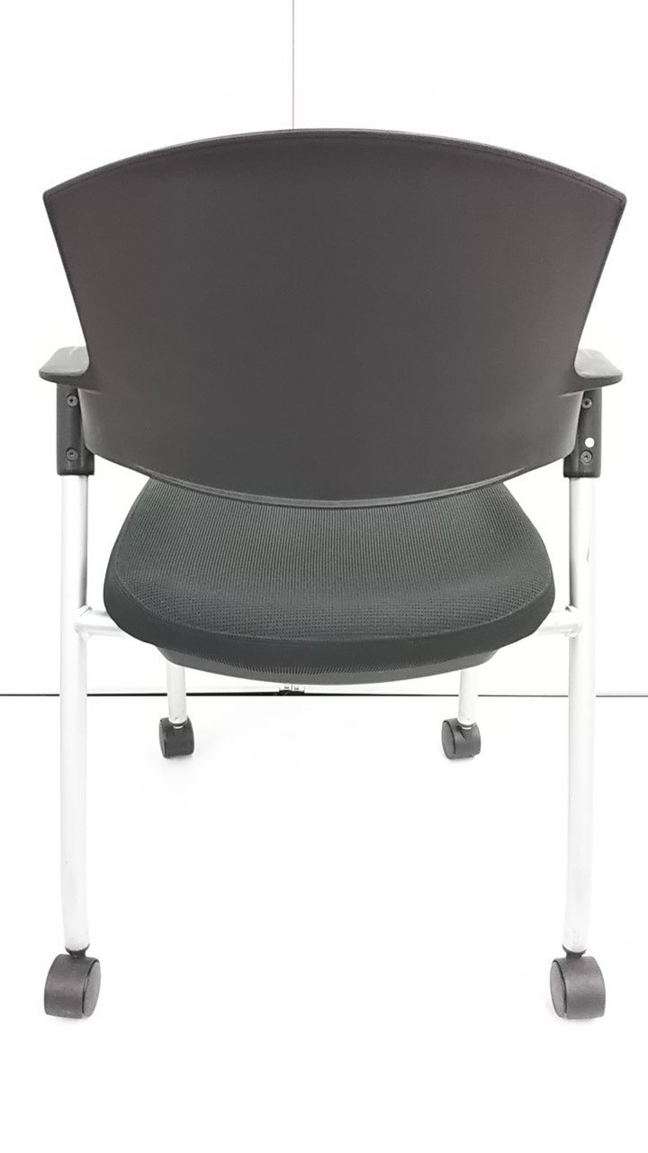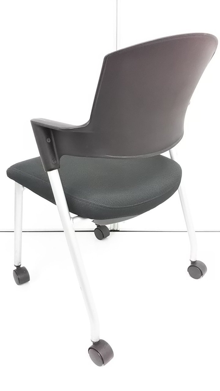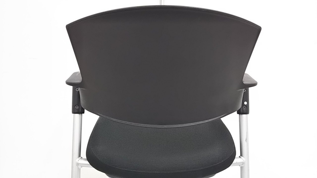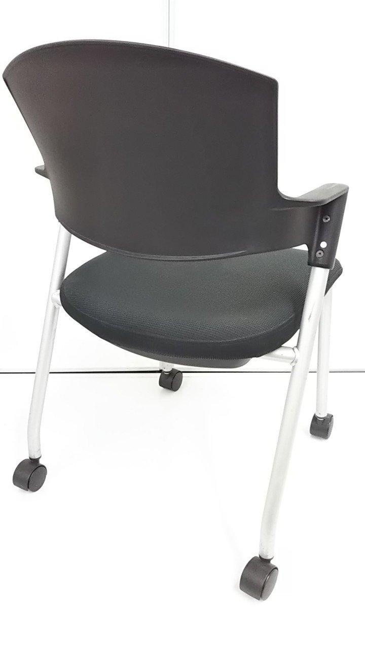 【シンプルスマートなスタッキングチェア!分厚いクッションで長時間でも快適な座り心地!】■スタッキングチェア 肘付ミーティングチェア ■固定肘 ■キャスター付 ■ブラック ■背面樹脂/コクヨ(KOKUYO/プロッティ