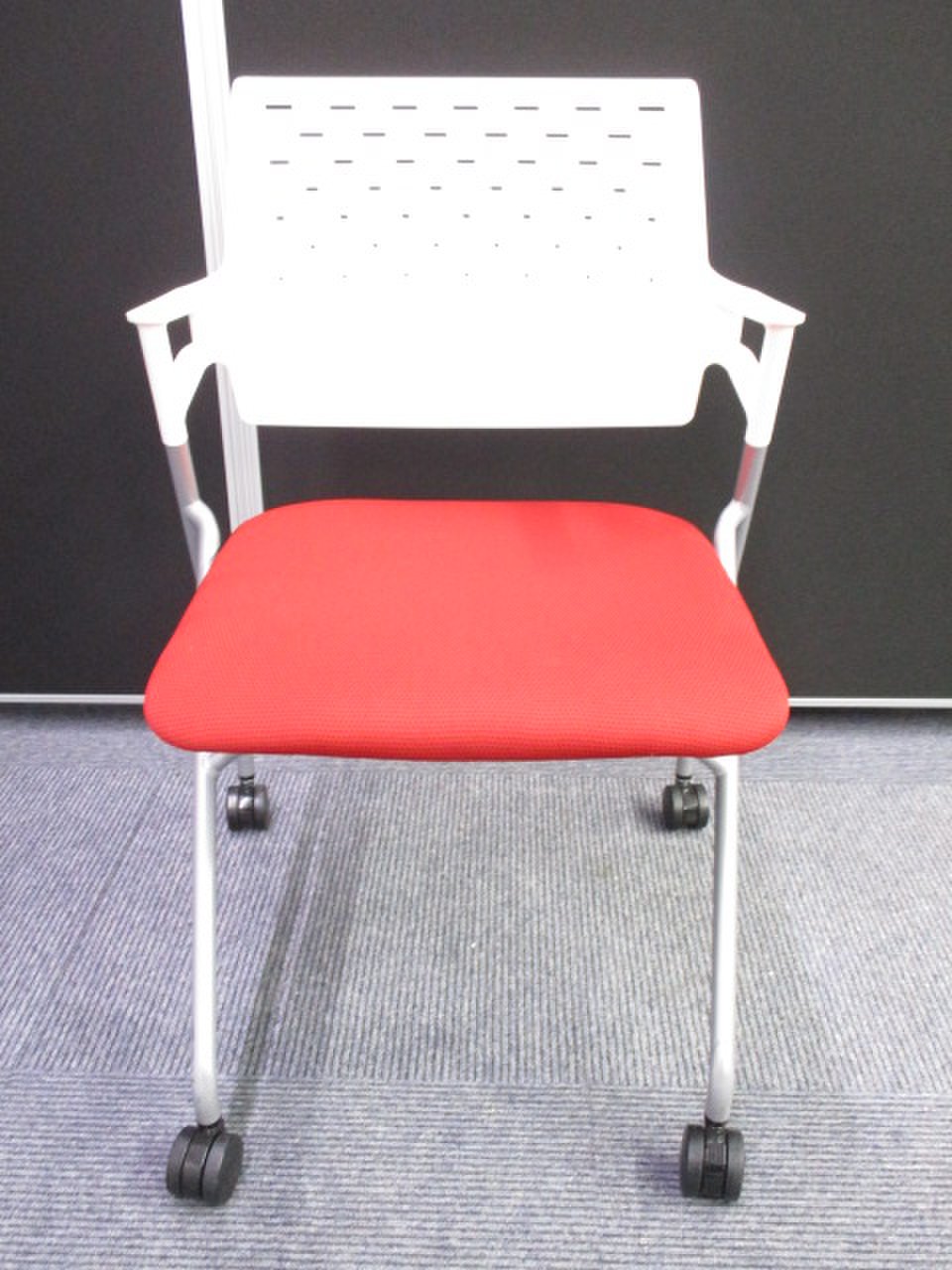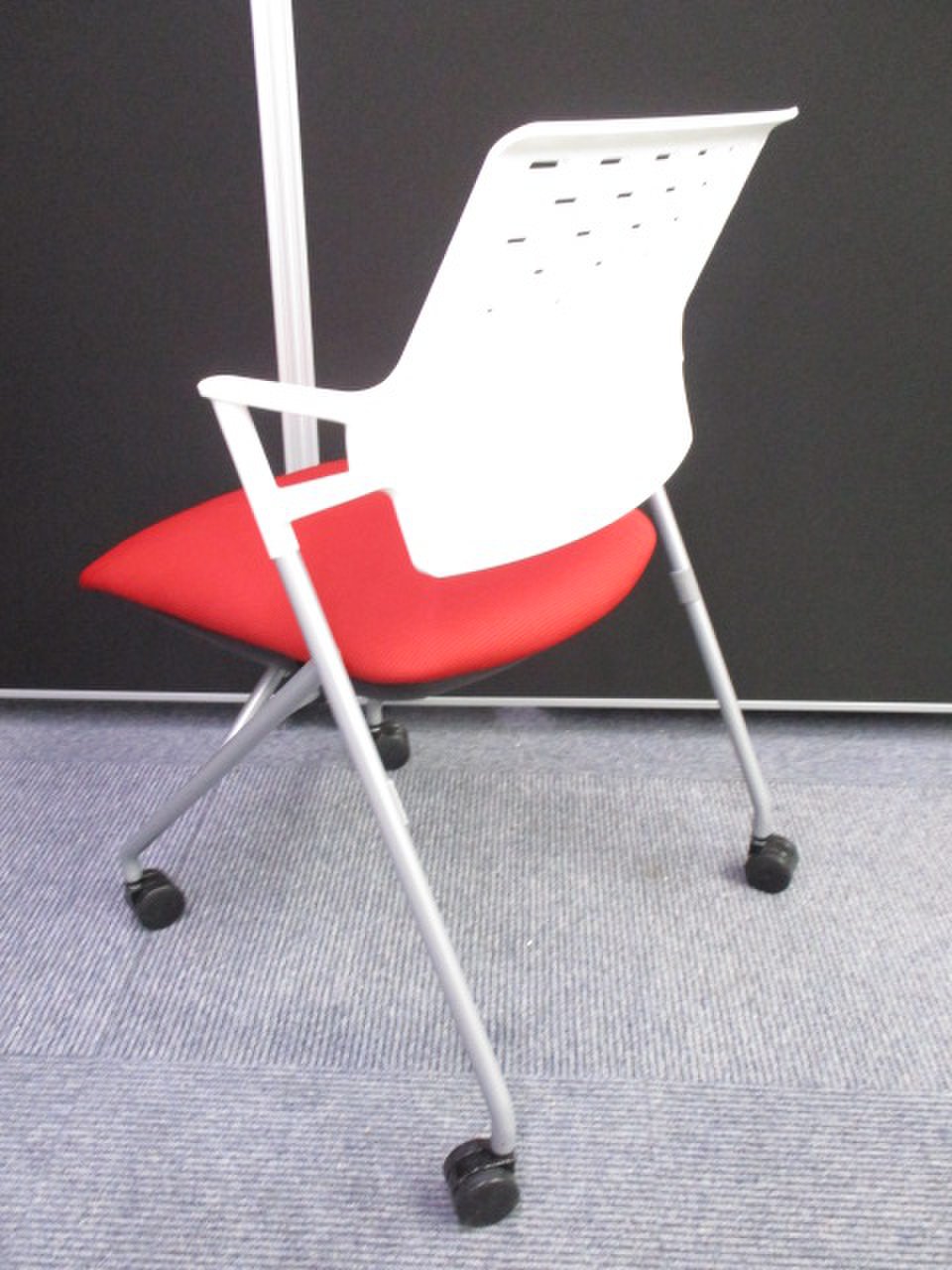 【KS】【クリスマスカラーのチェア!】おしゃれなミーティングチェア【ネスティングタイプ】- 茨城南店