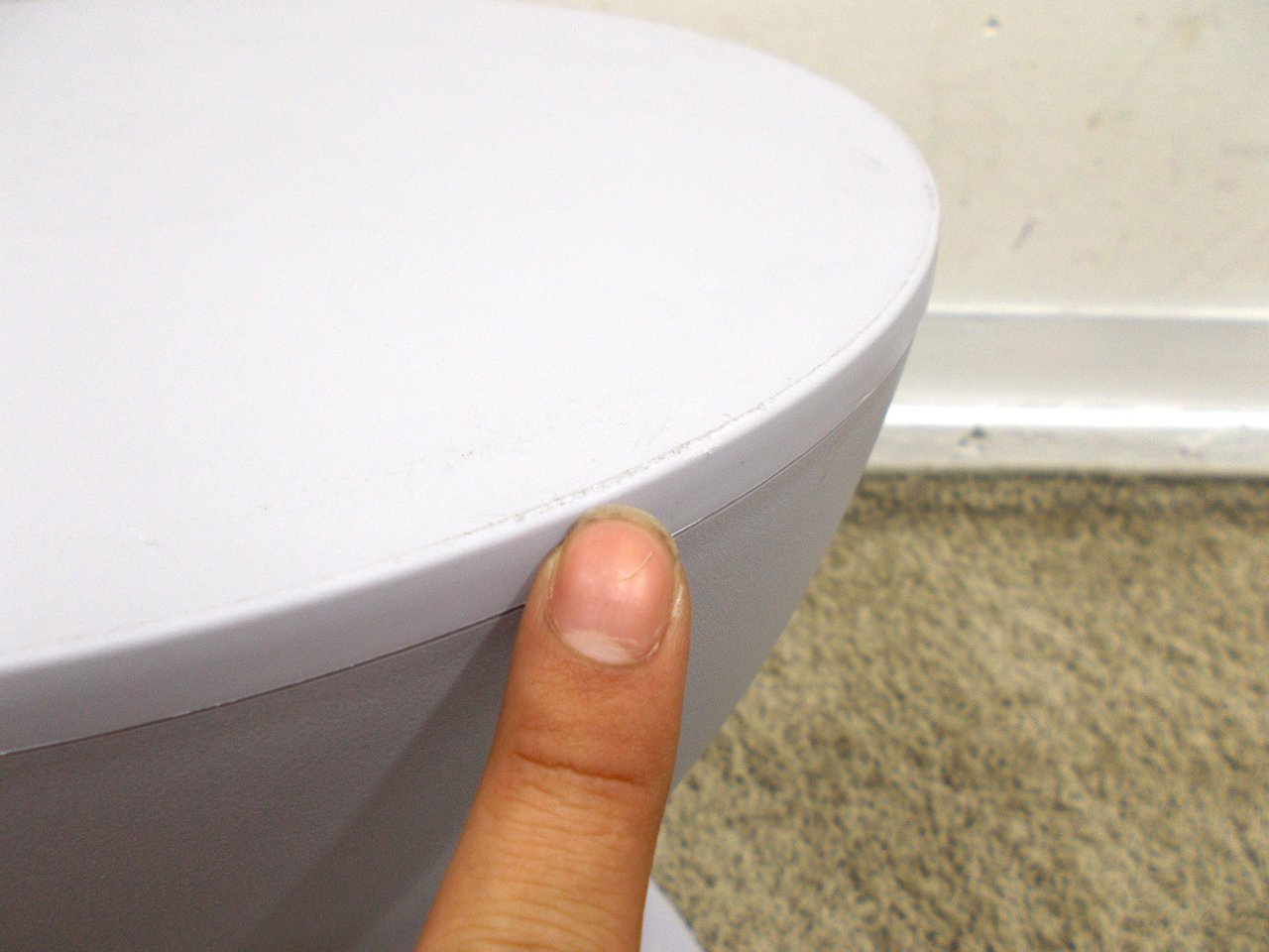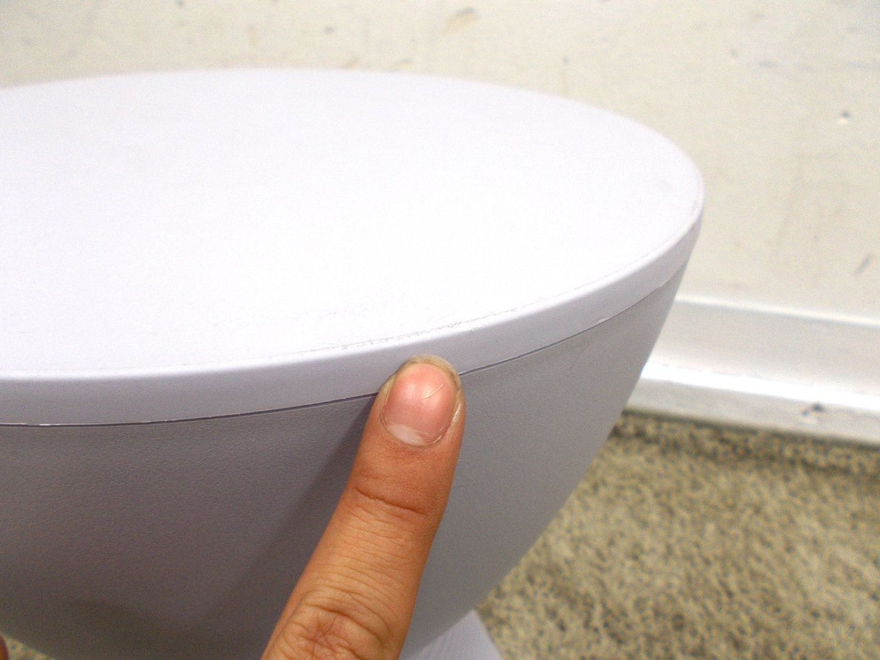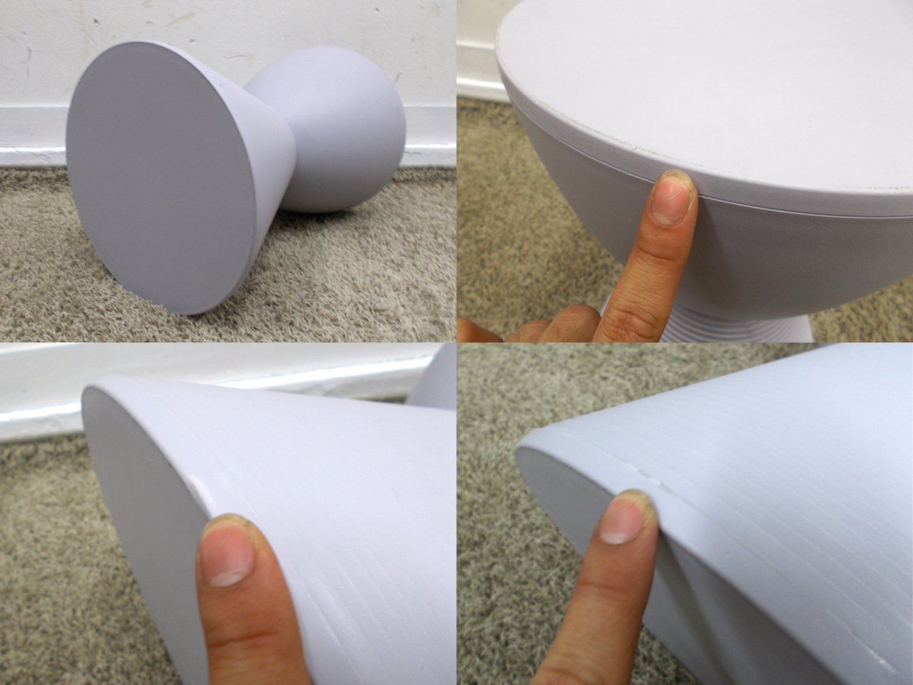 - かなり強い濃い黄ばみ・変色が商品全体にある。(例、座面・背もたれ、脚部等にある。)