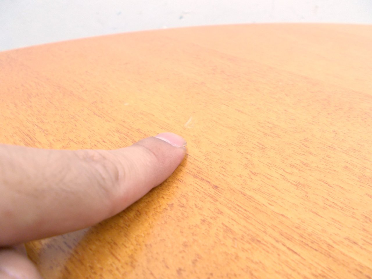 - 壊れている天板歪み、アジャスター無し、キャスター使用不可のようにそのテーブルの本来の効用を果たすための機能に不具合がある。
