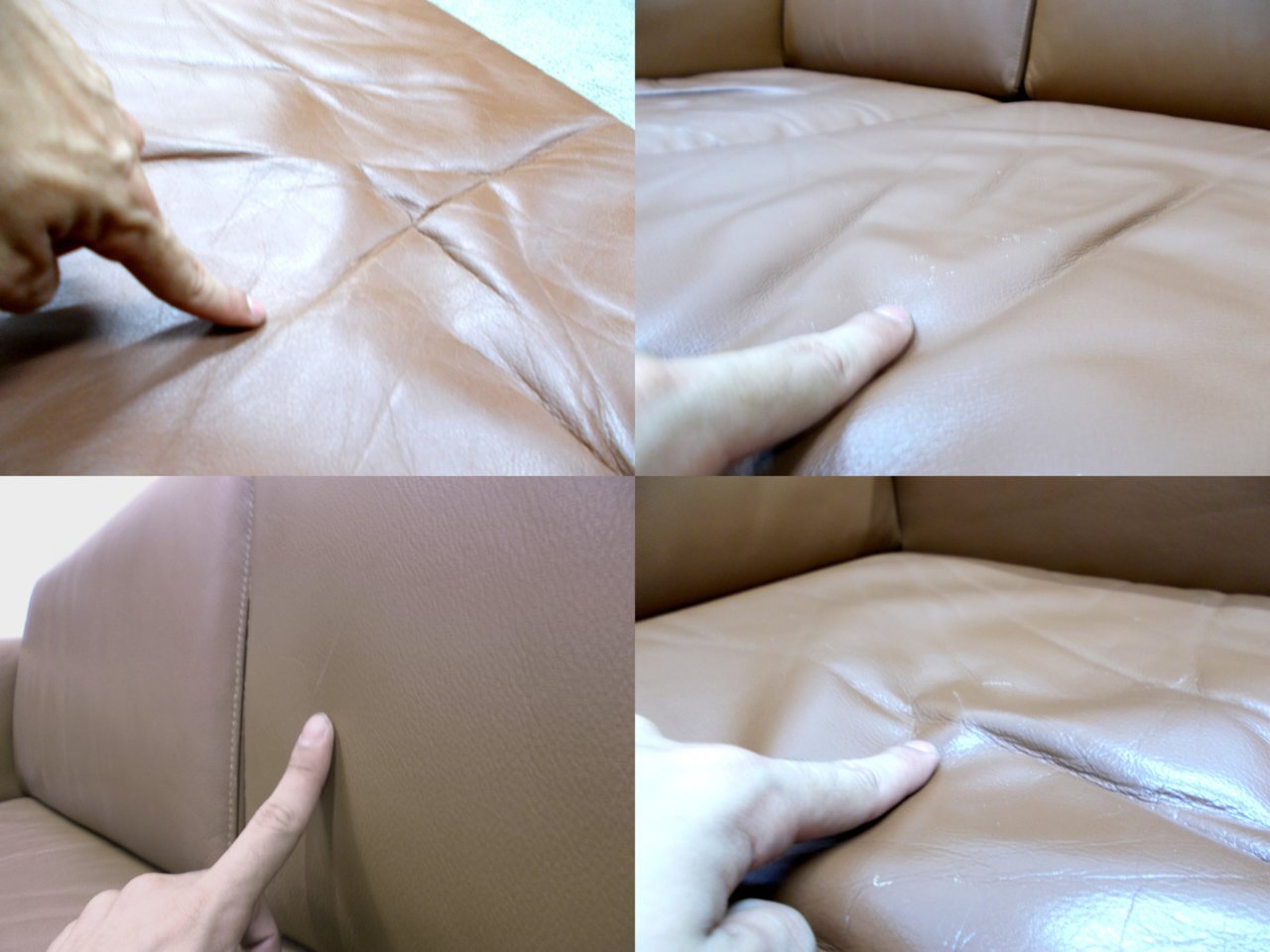 - 目立つ箇所複数ありソファの場合、深い破け、ホツレ、へたり、しわ等が多数ある。(例、背もたれ、肘かけ、座面等にある。)センターテーブルの場合、深い傷・凹みが商>品全体にある。(例、天板、脚にある。)
