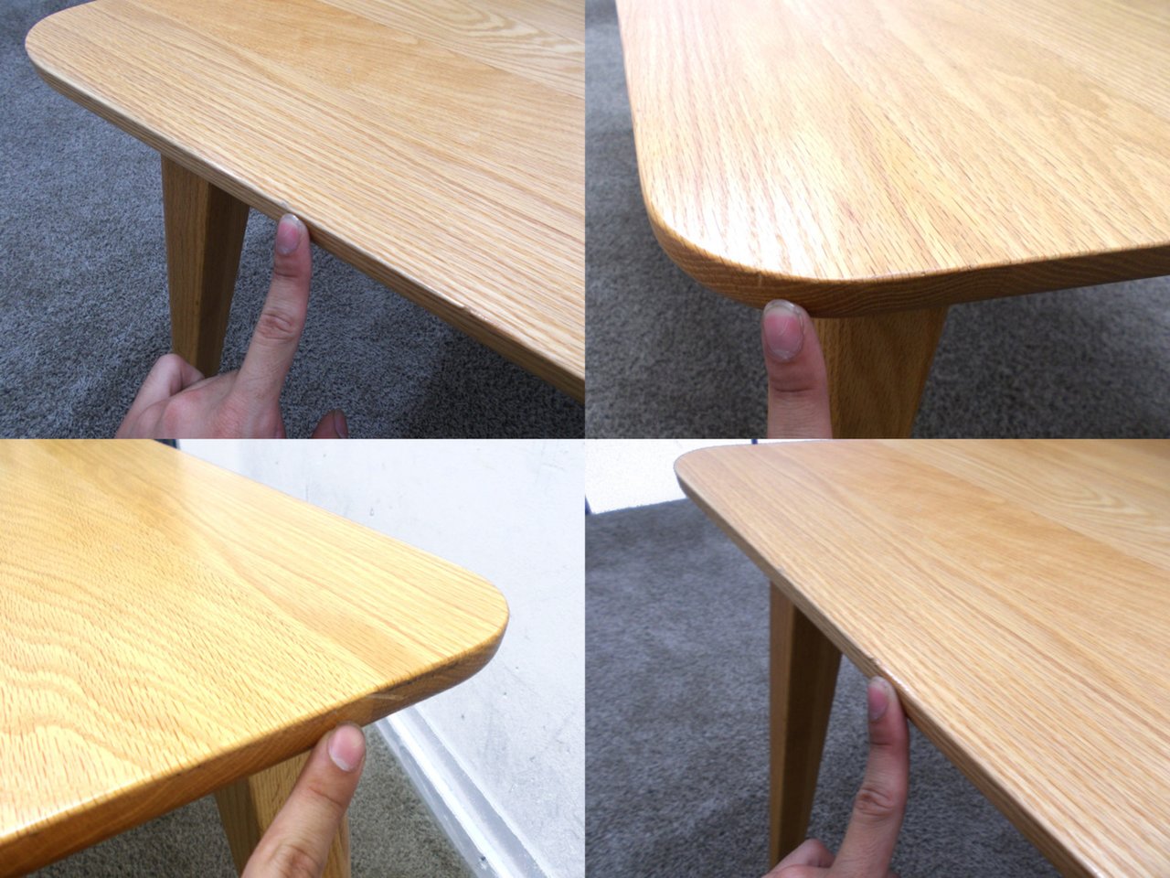 - 壊れている天板歪み、アジャスター無し、キャスター使用不可のようにそのテーブルの本来の効用を果たすための機能に不具合がある。