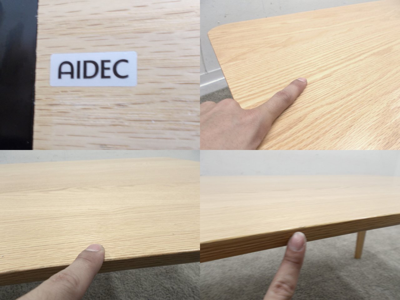 - 一部不具合あり天板歪み、アジャスター無し、キャスター使用不可ようなそのテーブルの本来の効用を果たすための機能以外の一部が使用不可な状態。(例、キャスターロッ ク機能使用不可、棚板無し等がある。)